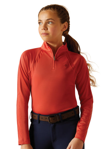 The Ariat® Kids’ Solid Sunstopper Shirt 3.0 is a quarter-zip base layer riders can feel extra good about wearing! This updated version of a perennial favorite is made with a lightweight, recycled poly piqué knit in a fashionable color. Rated UPF 50, it helps shield skin from the sun. ClimateTek™ cooling technology and FreshTEK™ odor resistant technology work together to keep kids feeling fresh.