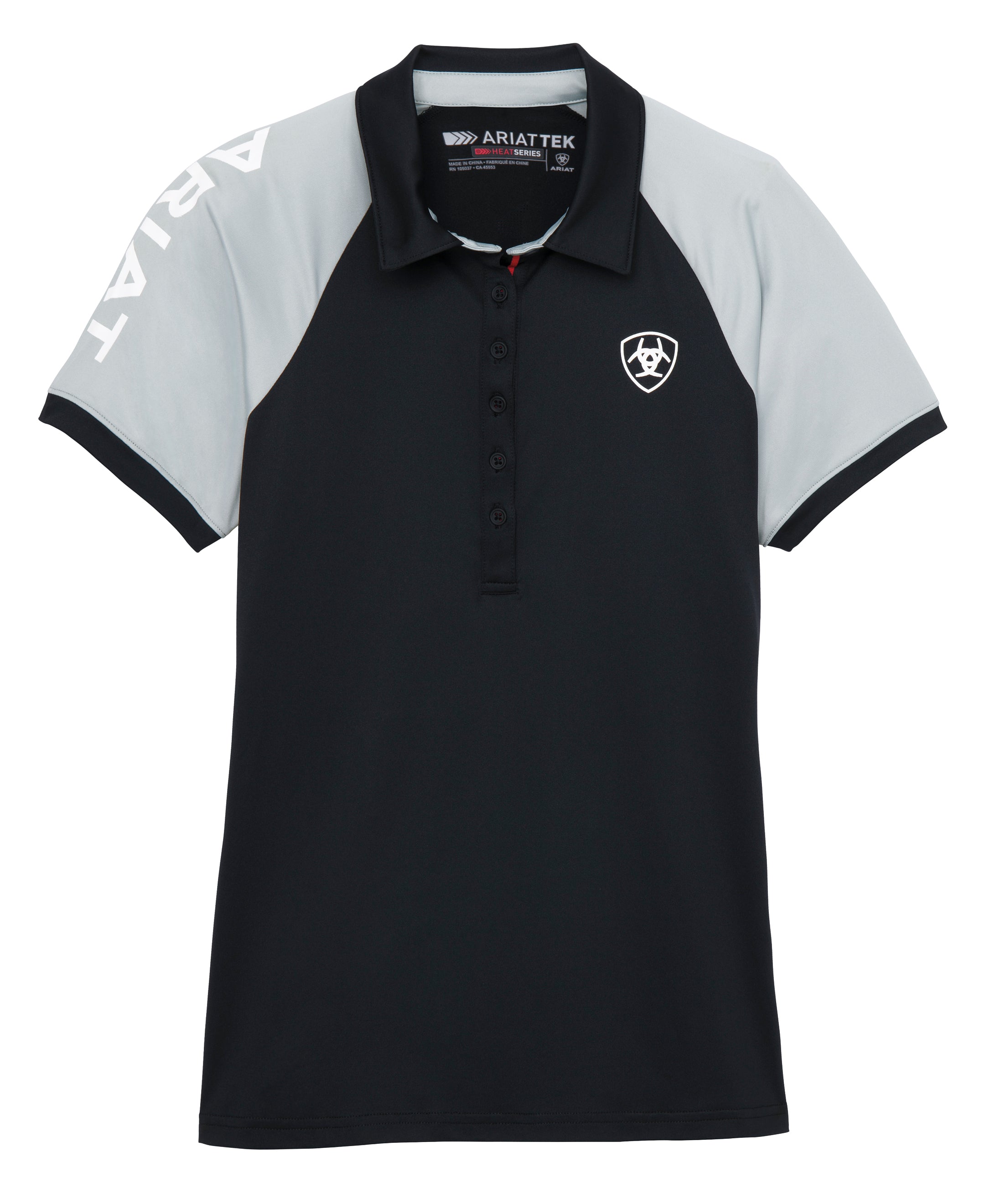 The Ariat® Ladies’ Team Polo Shirt 3.0 with AriatTEK Heat Series technology keeps you cool in the most rigorous rides. Boldly stylish with team color blocking, it’s made of stretch jersey with advanced fabric technologies.