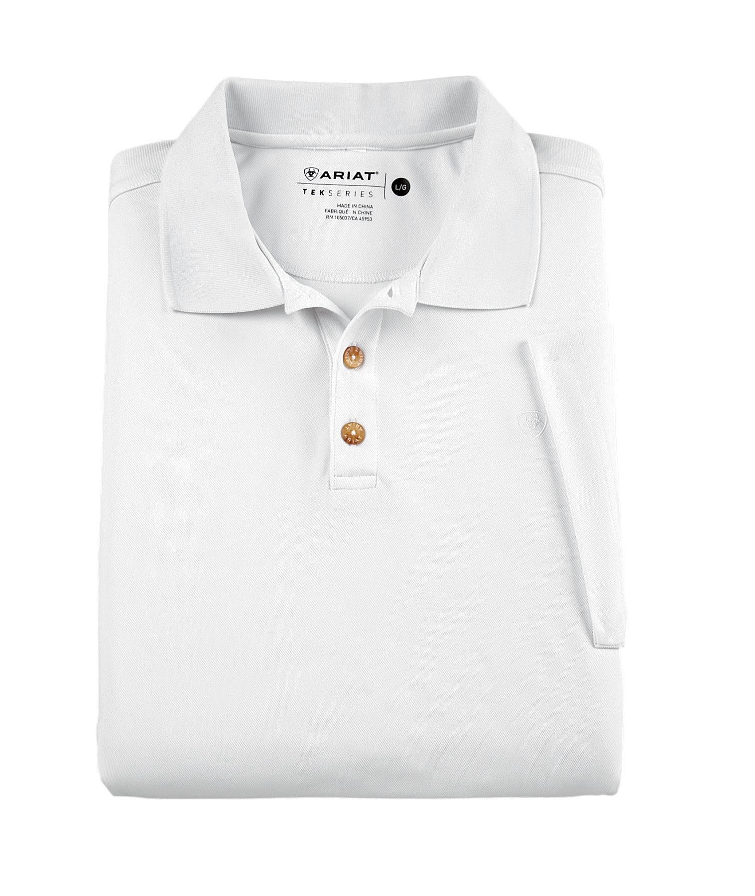 The Ariat® Men's Tek Polo Shirt delivers moisture management to keep active riders dry and comfortable in warm conditions. Ariat’s Moisture Management Technology™ (MMT™) pulls moisture away from the skin and transports it to the fabric’s outer face for quick evaporation.