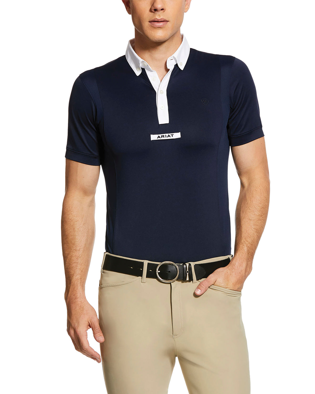 The Ariat® Men’s Tek Short Sleeve Show Shirt with AriatTEK® Heat Series technology combines a classic look and modern performance features. Technical stretch fabric offering UPF 50+ coverage has a crisp poplin show collar and tie loop that looks polished under a show coat. Mesh panels at the sides help keep you cool. Moisture Movement Technology™ wicks perspiration from your skin.