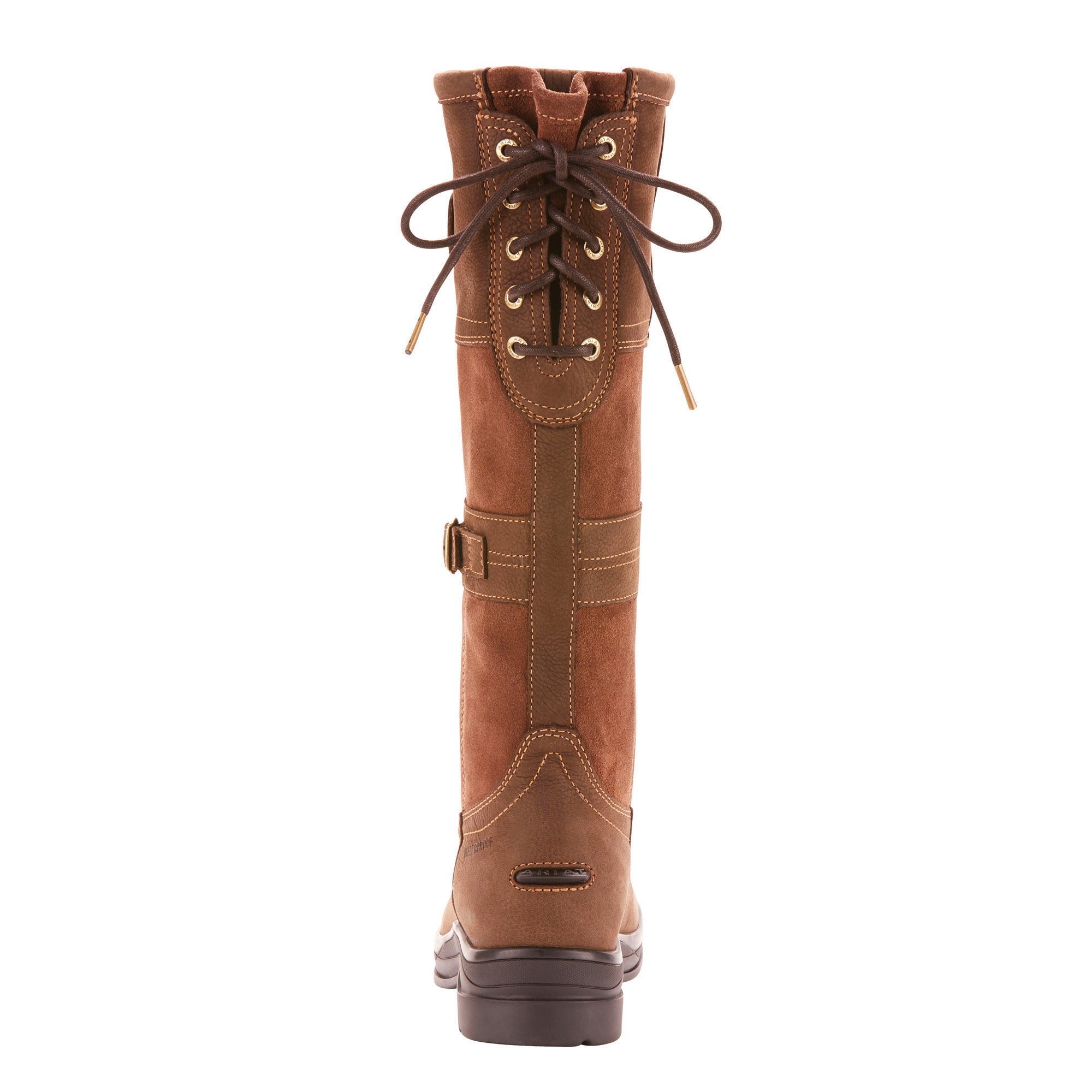 Equestrian buckle details accent the waterproof, full-grain leather upper of the Ariat® Ladies’ Langdale H2O Boot. Lace back gusset at the top adjusts for fit. Soft, microsuede covered footbed. Stabilizing lateral motion control device. Long-wearing Duratread™ outsole.