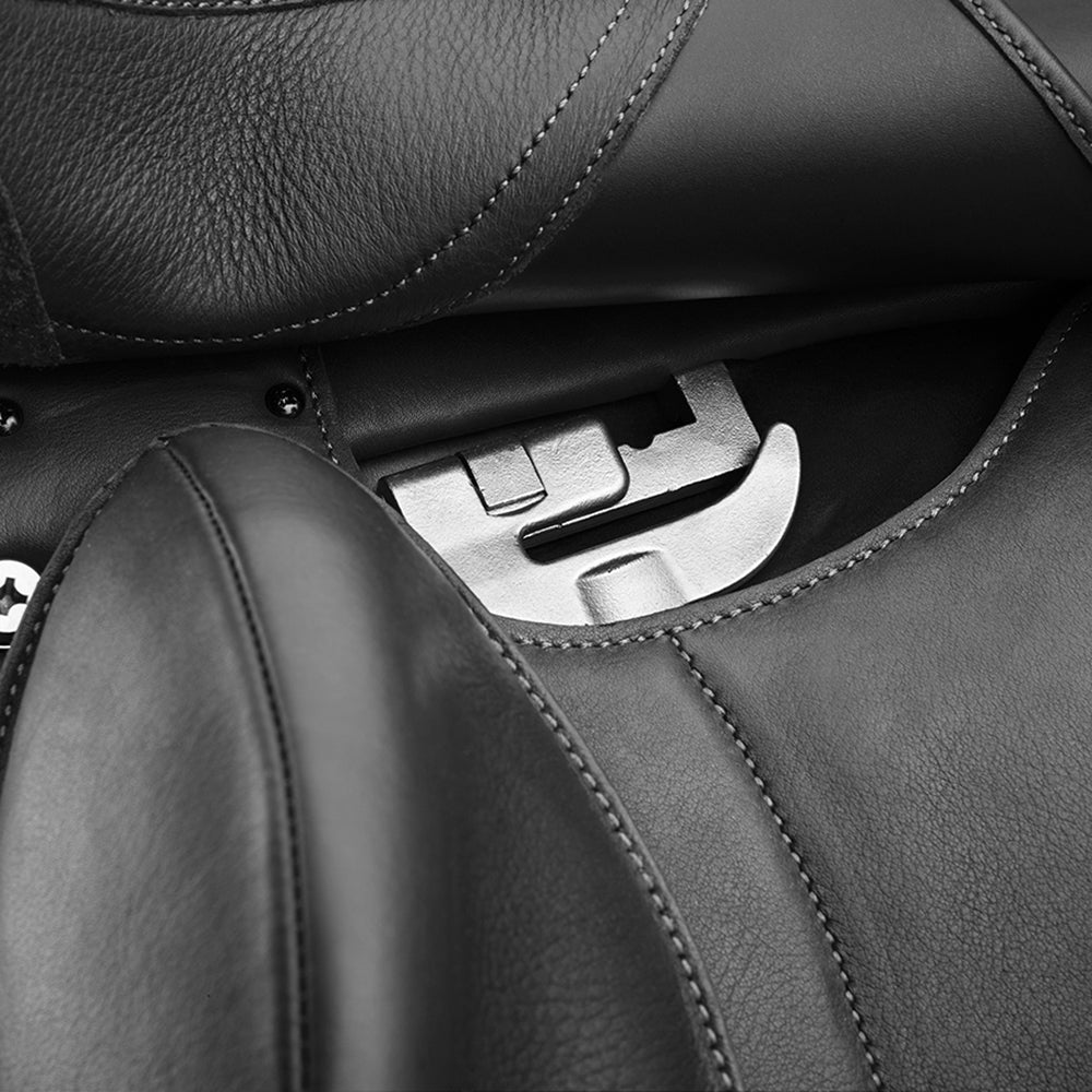 The Bates Artiste Dressage Saddle offers an extremely close ride in support of total harmony between horse and rider. When it comes to communication, the monoflap design enables the saddle to feel like it disappears, letting the rider feel the horse as never before. With the unique shaping of the saddle flaps, aids are transmitted to the horse clearly and directly.