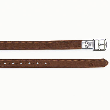 Bates Stirrup Leathers are elegant, high-quality leathers made from luxurious Bates leather. The riveted buckle design reduces the thickness of the leather under your leg, and the webbing core ensures that the leathers will not stretch. 1" wide.