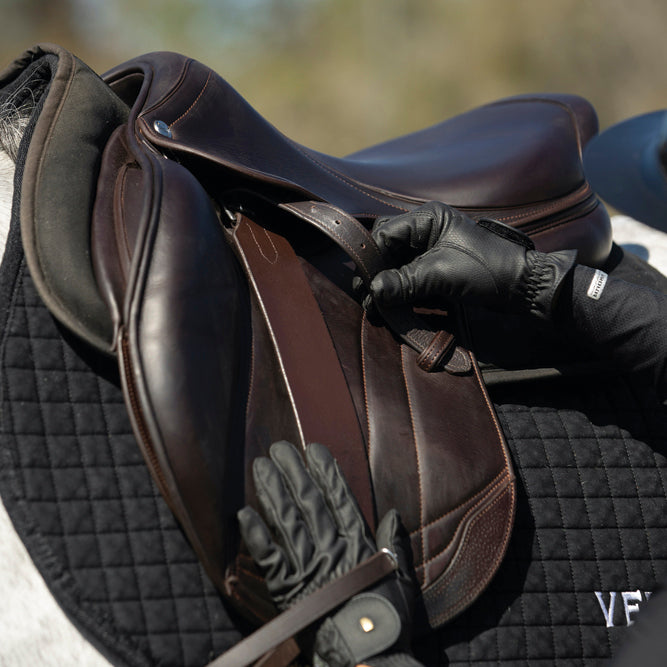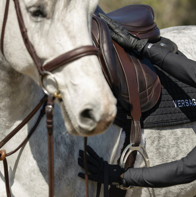 You’ll enjoy a closer connection to your horse with the Bates Luxe Leather Webbers. Designed without buckles, they eliminate the lumpy feeling under your thigh. The single thickness of leather under your leg removes excess bulk and interference, facilitating the accurate delivery of your leg aids. Made of Bates Luxe Leather, with a webbing core to ensure they will not stretch.