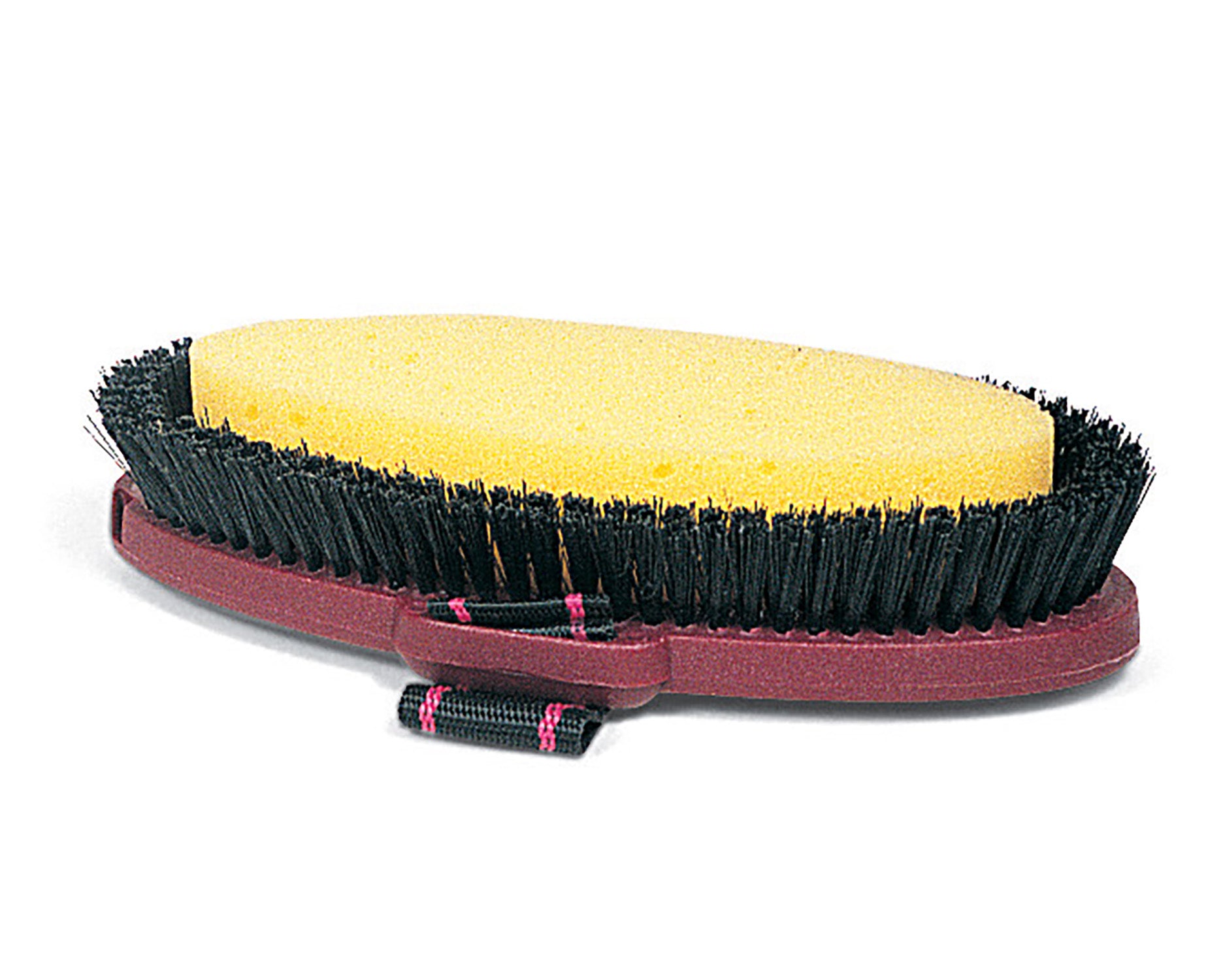 The Wash Brush has a center sponge surrounded by synthetic bristles. Perfect for cleaning or bathing horses, this innovative combination brush has a plastic back and web handle.