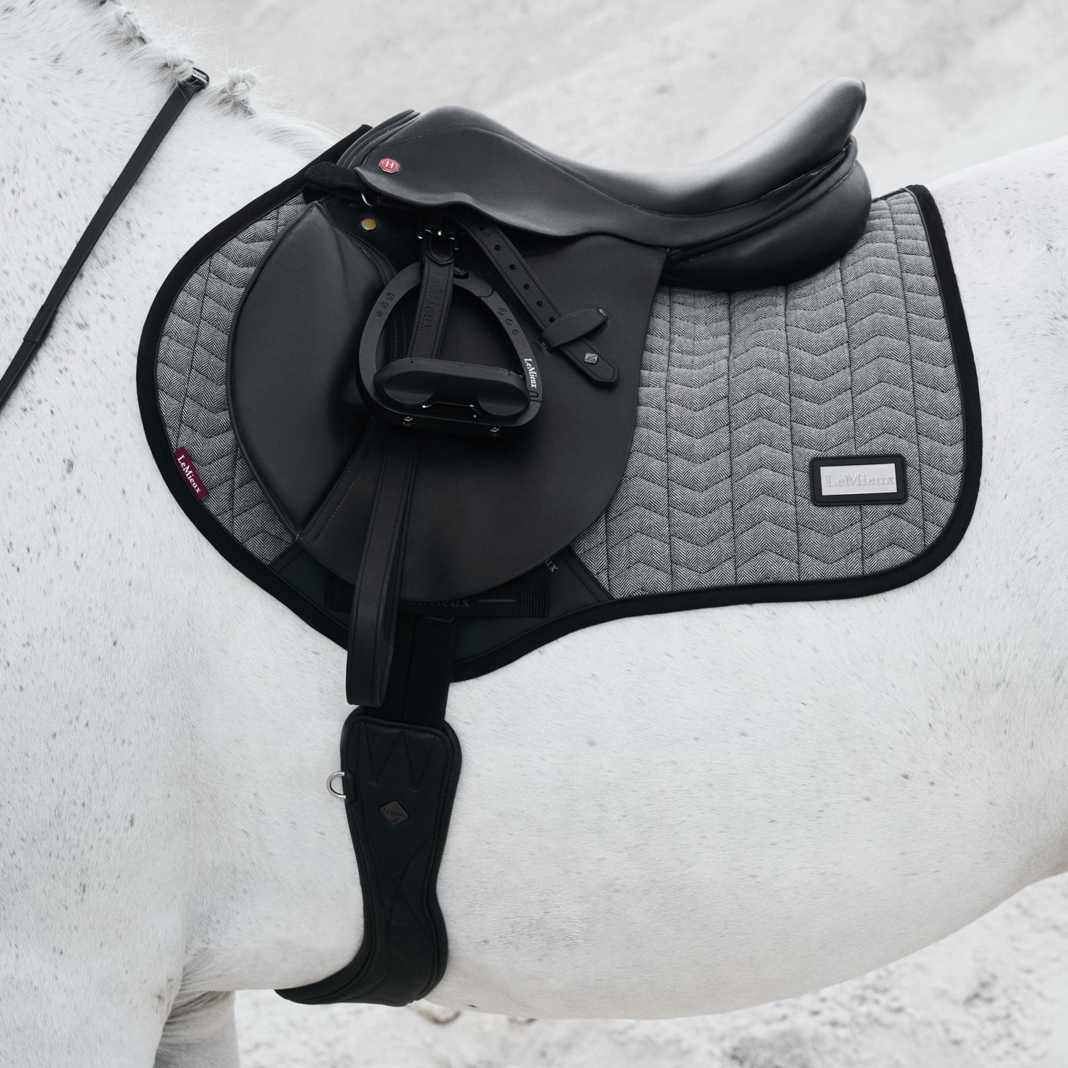 Express your style with this luxe LeMieux® Aspen Close Contact Saddle Pad from the Aspen Collection. Crafted in a premium fabric, it has a sporty quilted pattern with an athletic and elevated feel. Patent PU piping catches the light, and a gunmetal LeMieux badge matches back to the rest of the Aspen Collection.