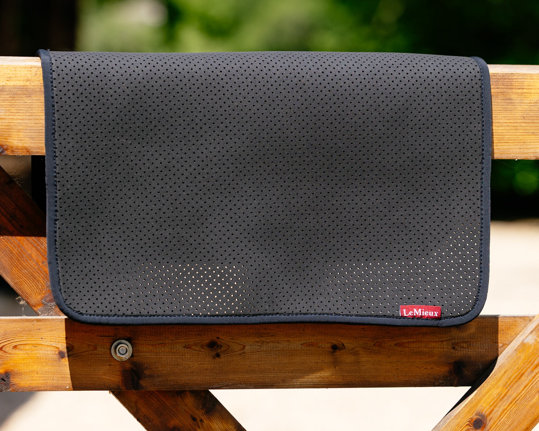 The LeMieux® Square Non-Slip Half Pad design offers fuller coverage for extra grip. It has a thin layer of perforated shaped neoprene grip under the saddle for extra comfort, security and breathability. Soft bound edge ensures that the pad keeps its shape.