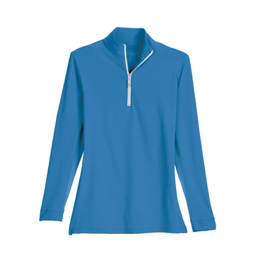 Long sleeves have full-length mesh panels to promote airflow for added cooling. This gorgeous, semi-fitted shirt is styled with a color-coordinated quarter zipper, stand collar and nicely finished cuffs.