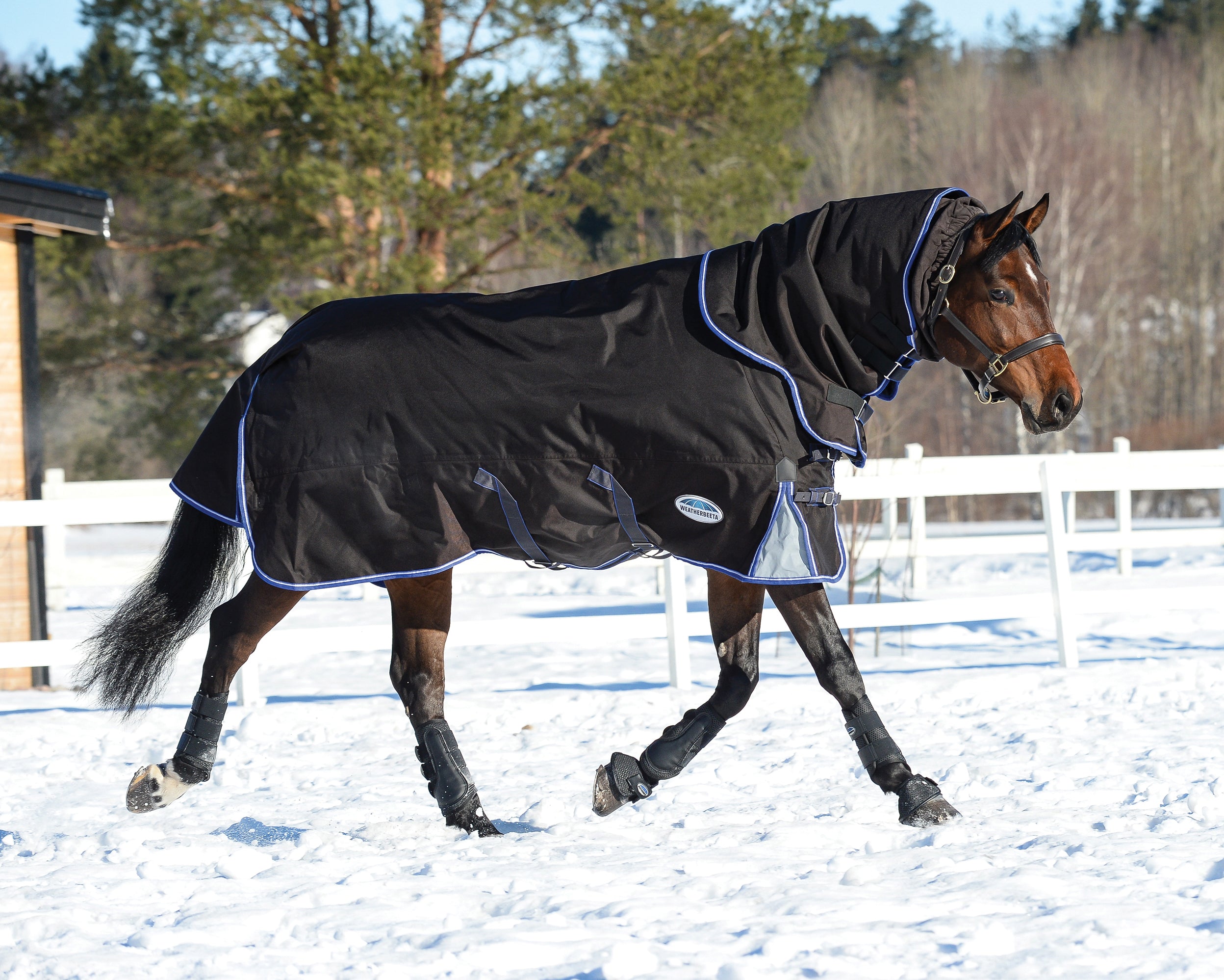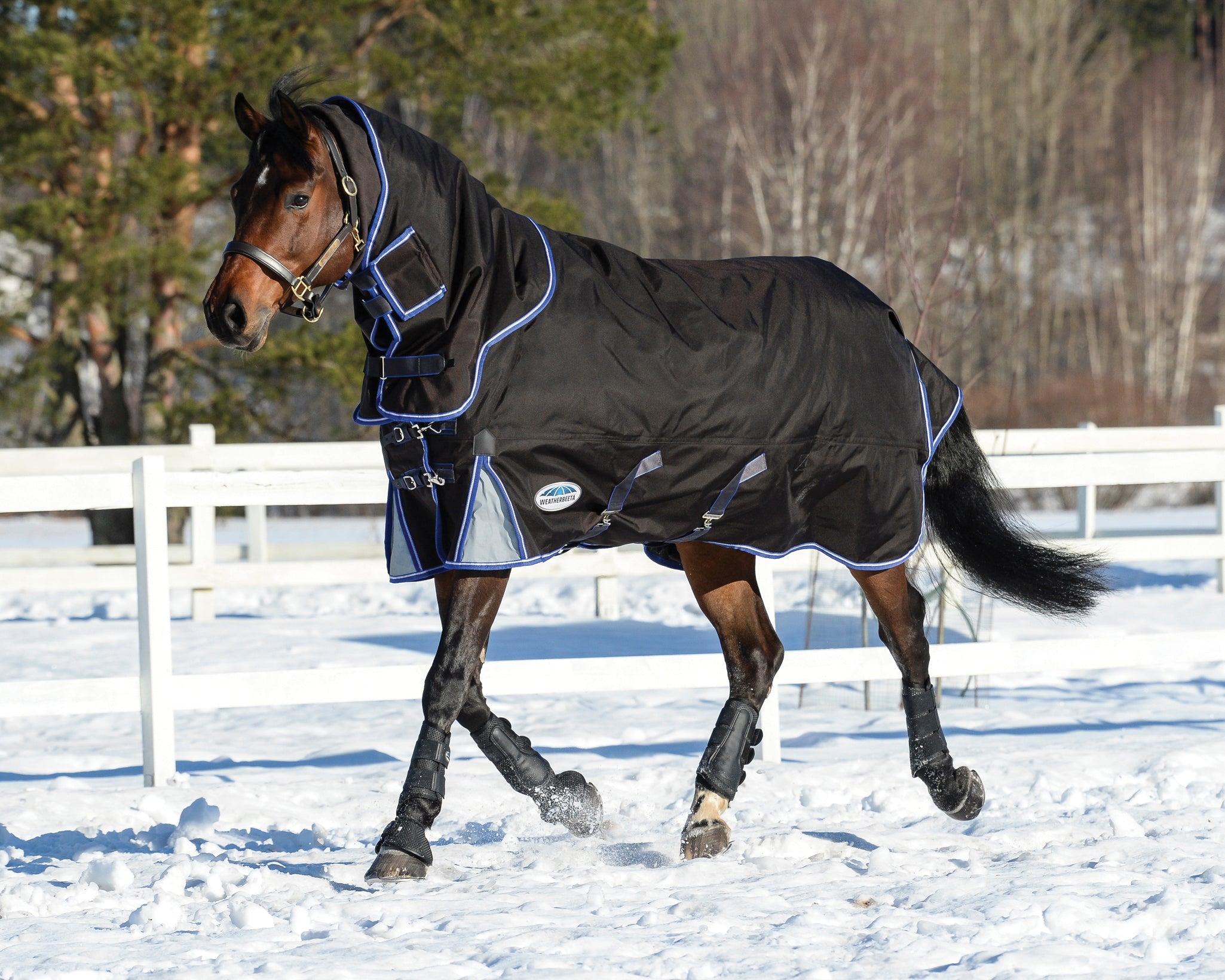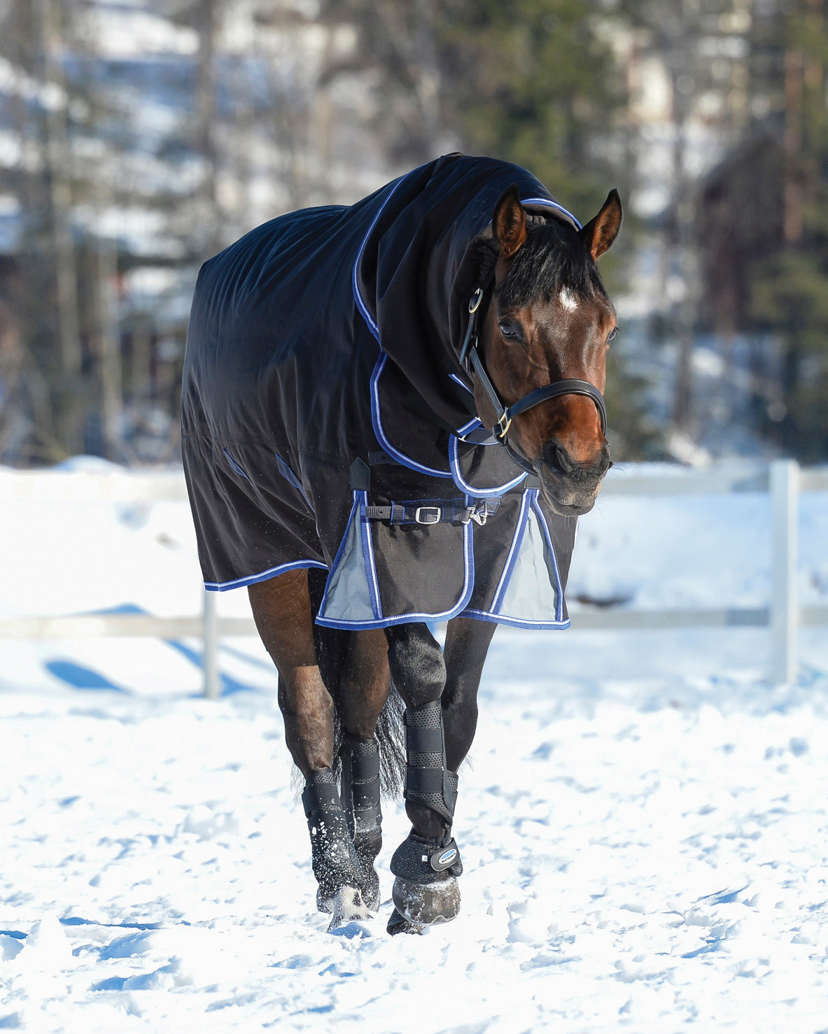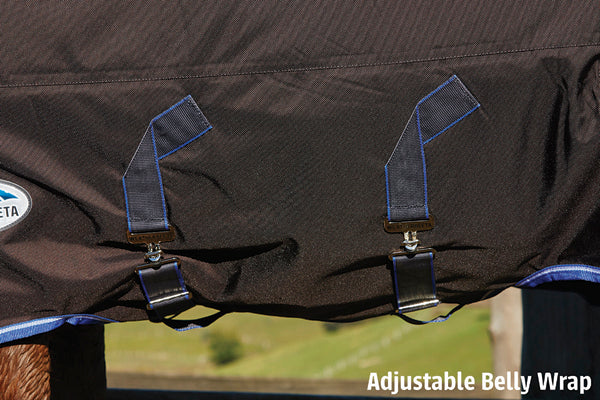 WeatherBeeta’s Cozi Guard provides unbeatable protection of the chest, and the Freedom System features cupped shoulder darts with forward positioned gussets. The full wrap tail flap has a two-piece design to wrap around the horse’s quarters for maximum protection.
