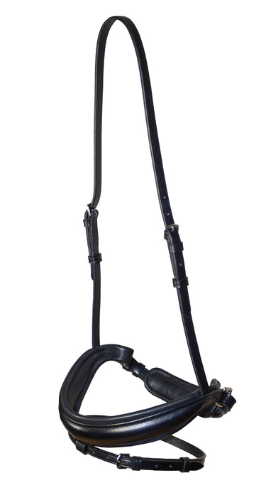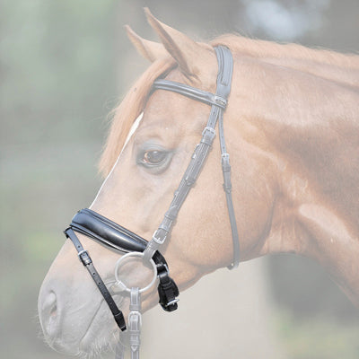 The Kavalkade Extra-Wide Flash Crank Caveson features a generous 1 5/8" wide noseband that disperses pressure over a greater area and suits horses with larger heads. Padded with soft black leather.