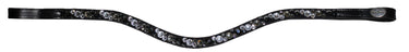 Kavalkade Sparkle Browband in black leather is shaped for style and fit. Intriguing, alternating diagonal rows of white, gray and black small and large crystals lend sparkle.