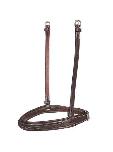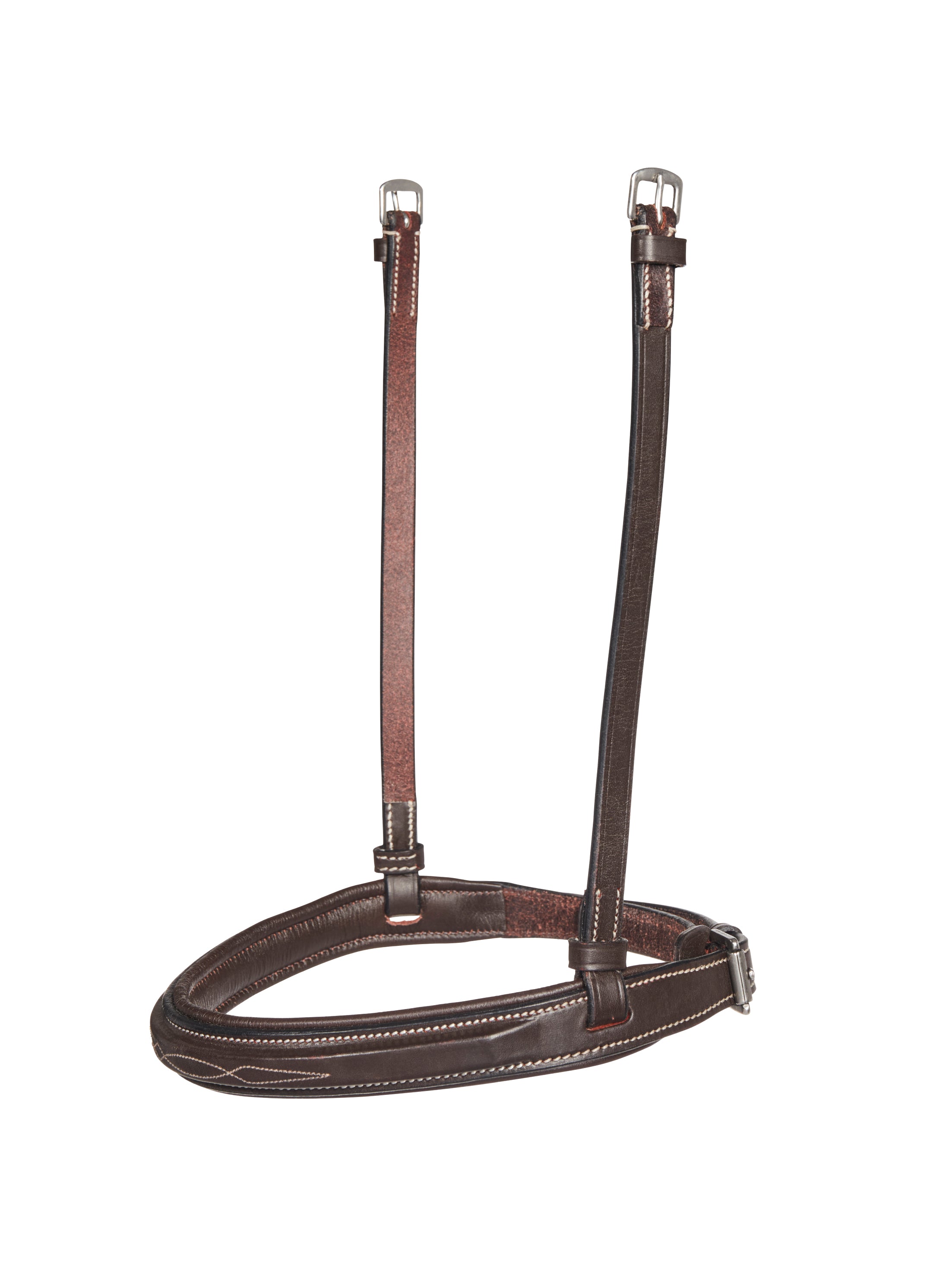 This Build-A-Bridle Fancy-Stitched Hunter Noseband is classically styled and crafted from chocolate Argentine leather that is lightly preconditioned to reduce break-in time. It is padded for horse comfort and boasts reverse-punched holes to easy adjustments. The stainless steel buckle resists rust and stands up to use.