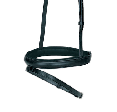 The DS Flash Noseband is made from hand-selected leathers. It boasts extra-fine stitching, hand-rubbed edges and stainless steel hardware usually found in bridle parts costing twice as much. A great replacement noseband for your dressage bridle!