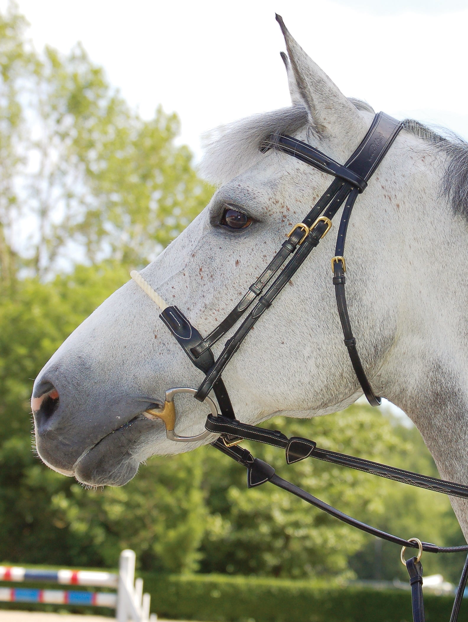 Popular in the jumper ring, the Dy’on Rope Noseband is designed to go with the Dy’on anatomic headpiece with brass cheek buckles on each side. This noseband features a waxed rope nose and premium English leather. The chin is padded and has a brass roller buckle for easy adjustment. Flash strap is not included.