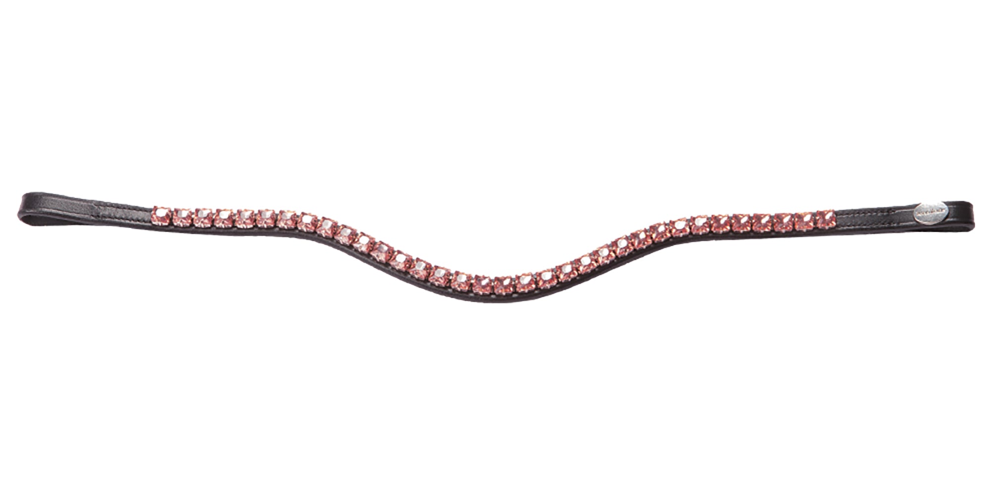 The Kavalkade Square Rose Crystal Browband is made of black leather and shaped to comfortably fit and flatter most horses. A single row of square-shaped, rose-colored crystals provides a trendy look.