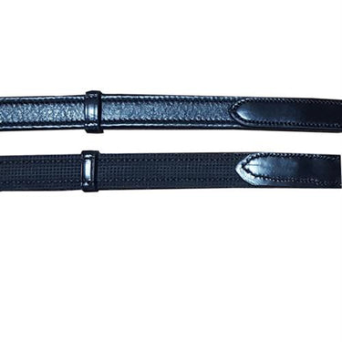A fusion of the Easy Grip and Calf-Lined Reins, these KL Italia Soft Grip Reins offer great grip. Soft, classic calfskin leather on the outside, leather hand stops and a lining of flexible rubber toward the horse provide superior hold. Leather fronts have buckle ends. Black.