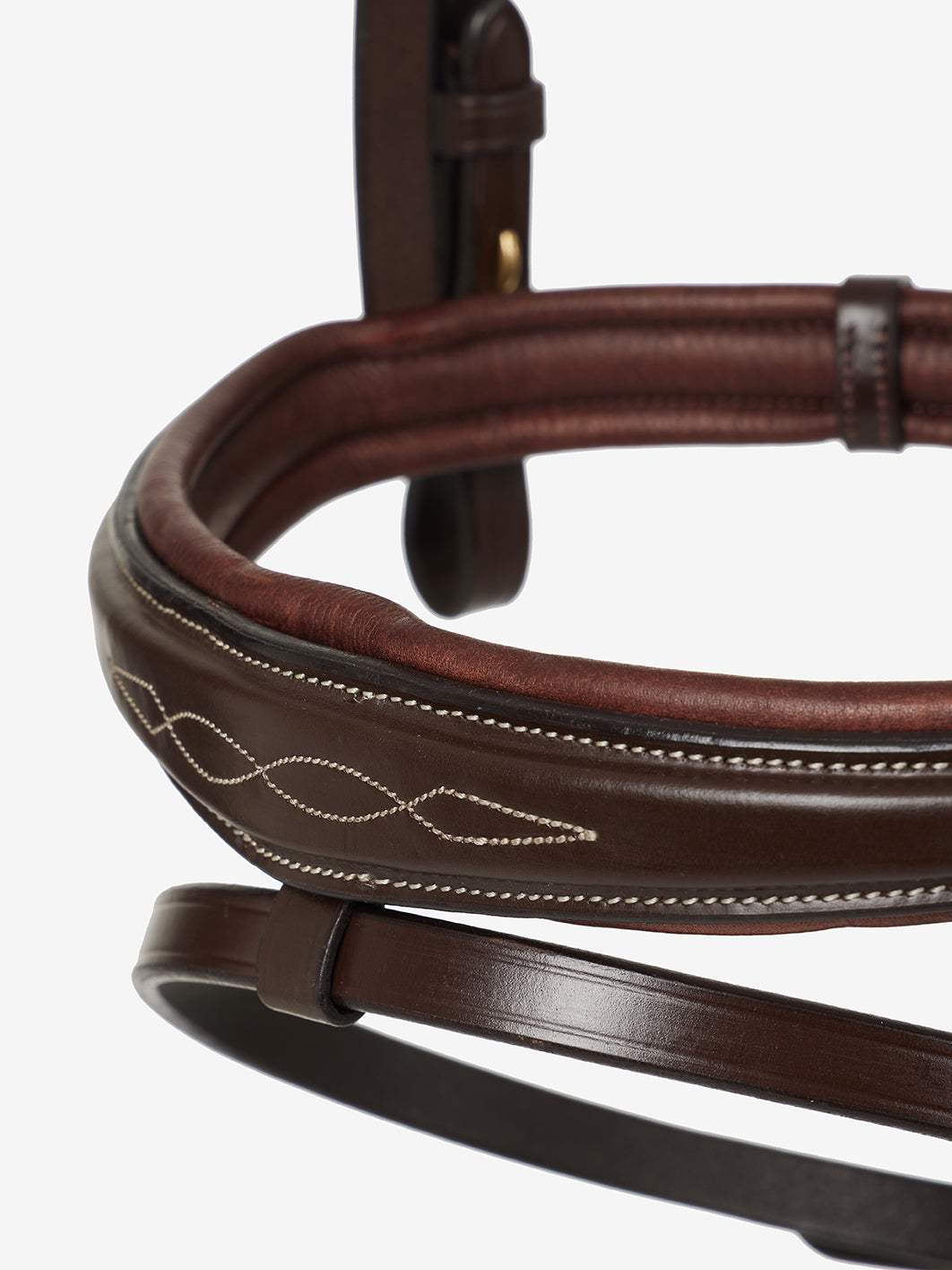 - Tapered, fancy-stitched and padded browband.