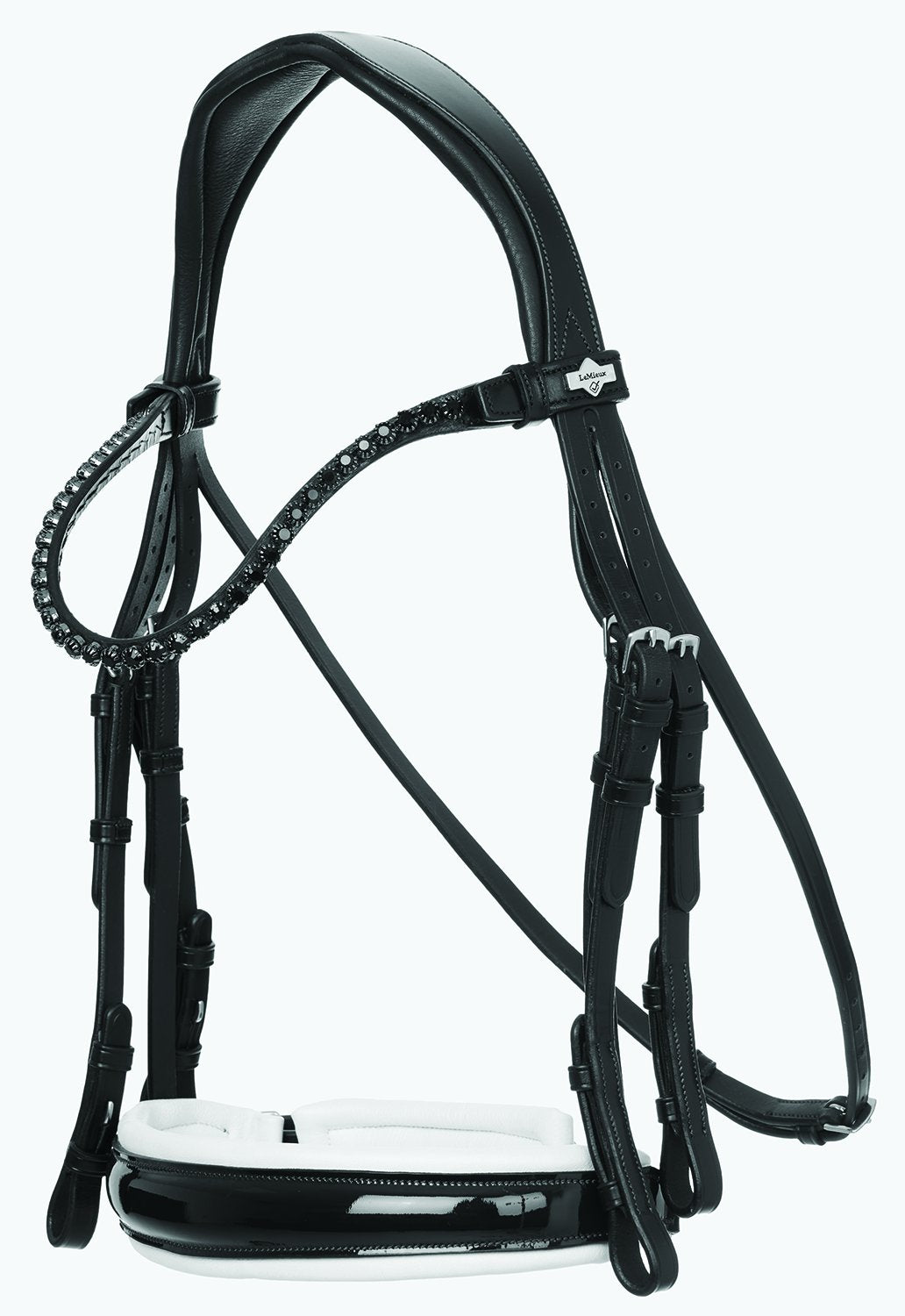 A distinctive, contoured crystal browband and gel-cushioned patent leather noseband communicate unmistakable LeMieux style, while the discreet throatlatch conveys a clean appearance. A gel-cushioned crank pad enhances comfort.