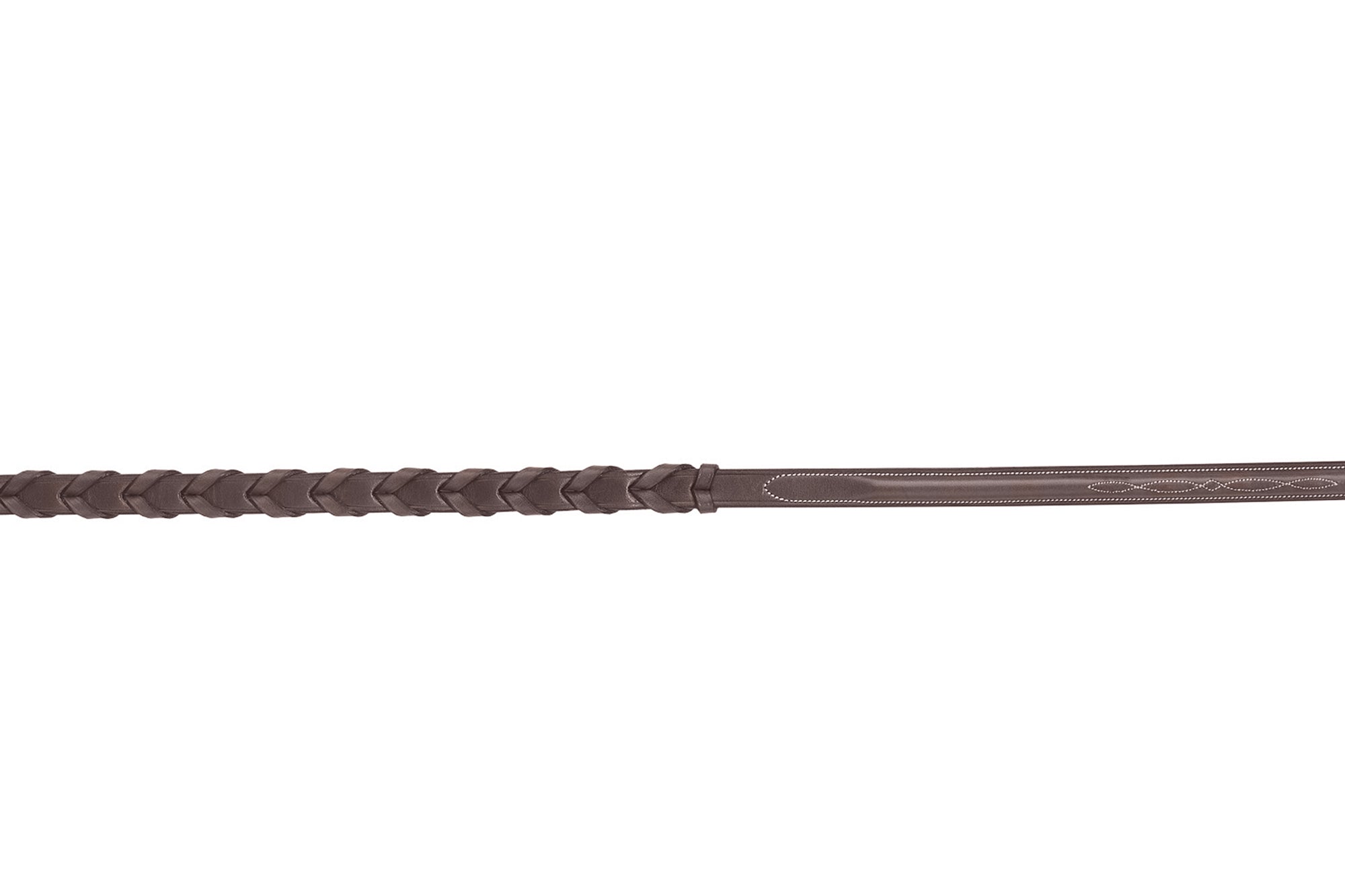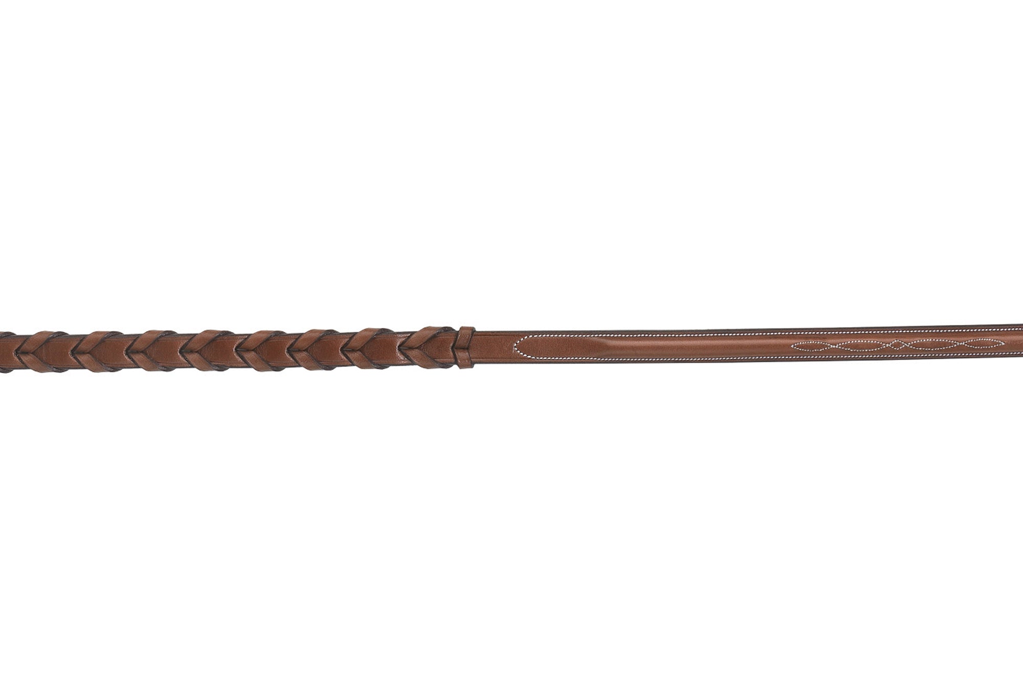 Pessoa® Pro Fancy-Stitched Laced Reins reflect superb craftsmanship with finely detailed, elegant white stitching, brown burnished edges, refined buckle straps, neat secure keepers, protective leather chapes and top quality stainless steel hardware.