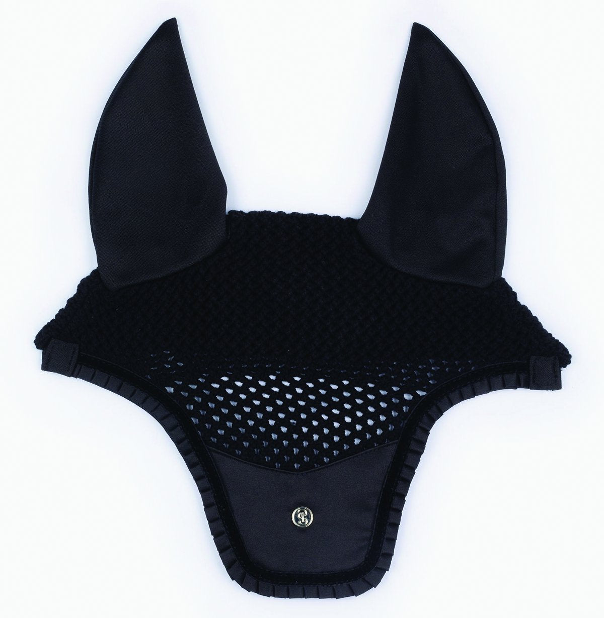 The PS of Sweden Ruffle Ear Bonnet is carefully shaped for fit. Hand-knitted crochet body has an antibacterial, odor-resistant finish and decorative ruffle edge. Stretchy ear covers made from breathable, antibacterial and quick-dry material keep flies out while allowing natural ear movements. PS logo emblem in front.