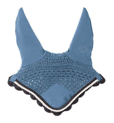 Designed to fit under your horse’s bridle, the Rider’s International™ Crochet Ear Bonnet keeps flies out of your horse’s ears in classic style. The breathable, hand-crocheted body is trimmed with a scalloped edge and double cording; a cloth center diamond is left plain to allow for a monogram. Ear covers are made for comfort in lightweight, moisture-wicking fabric.