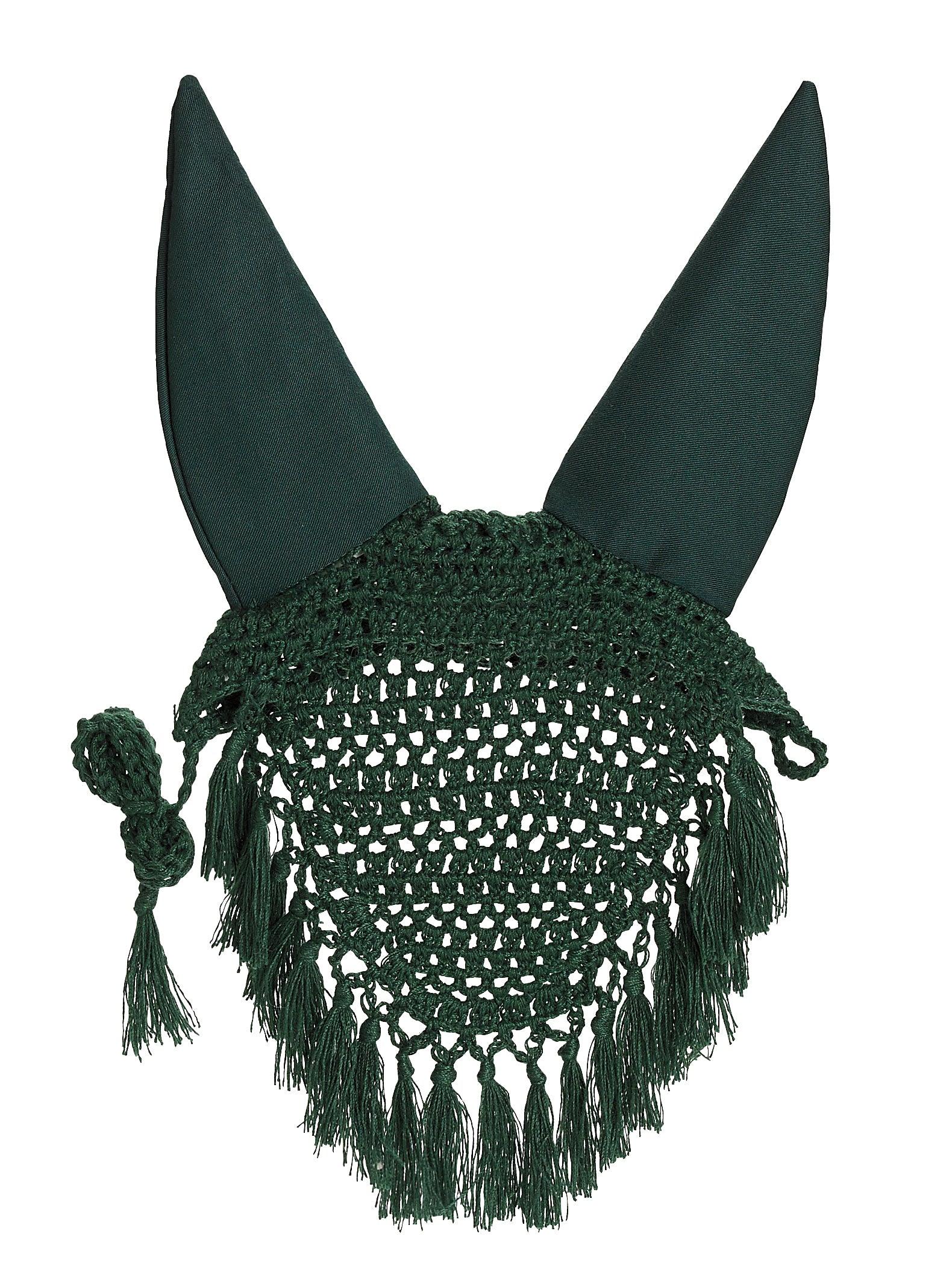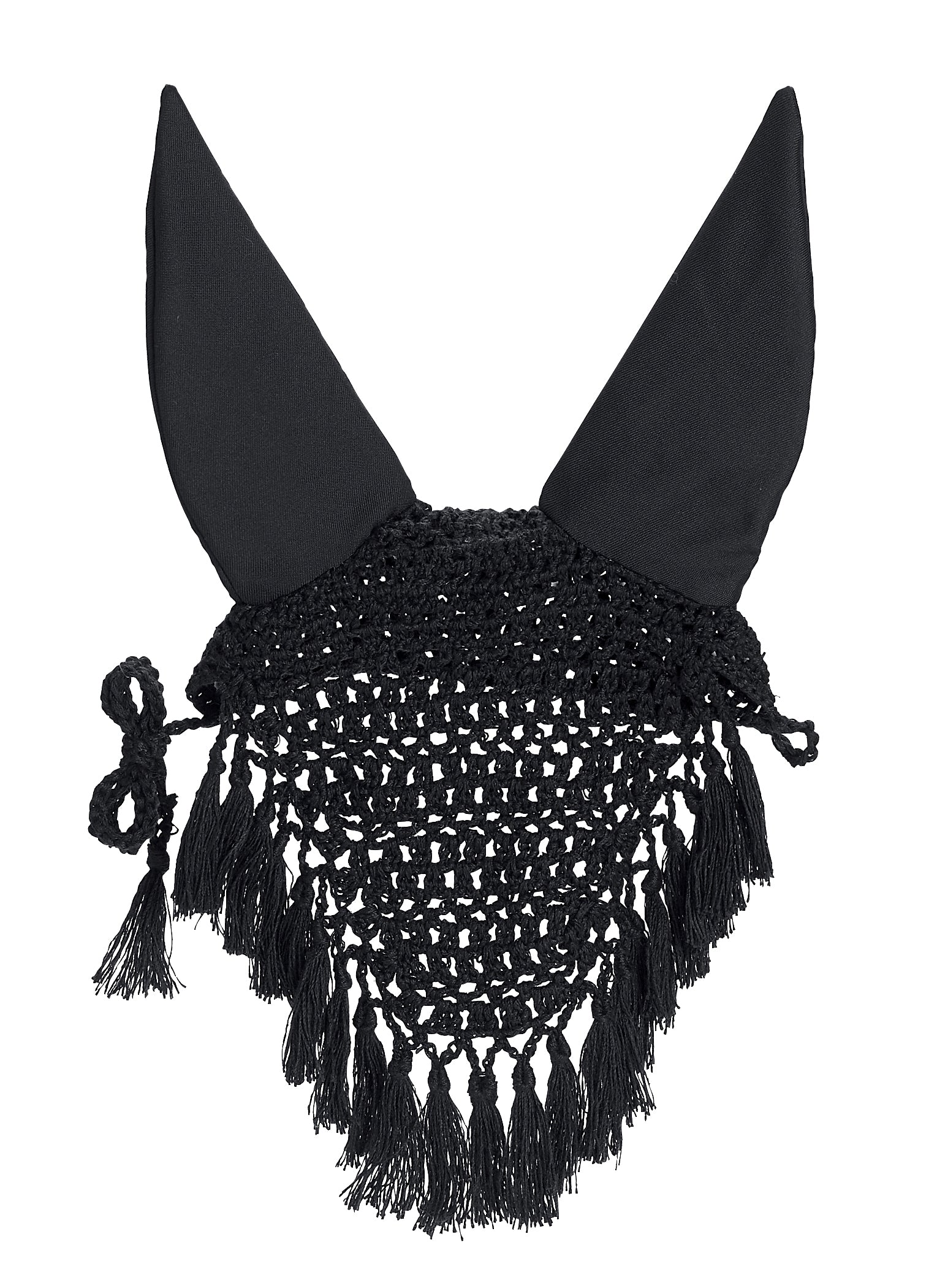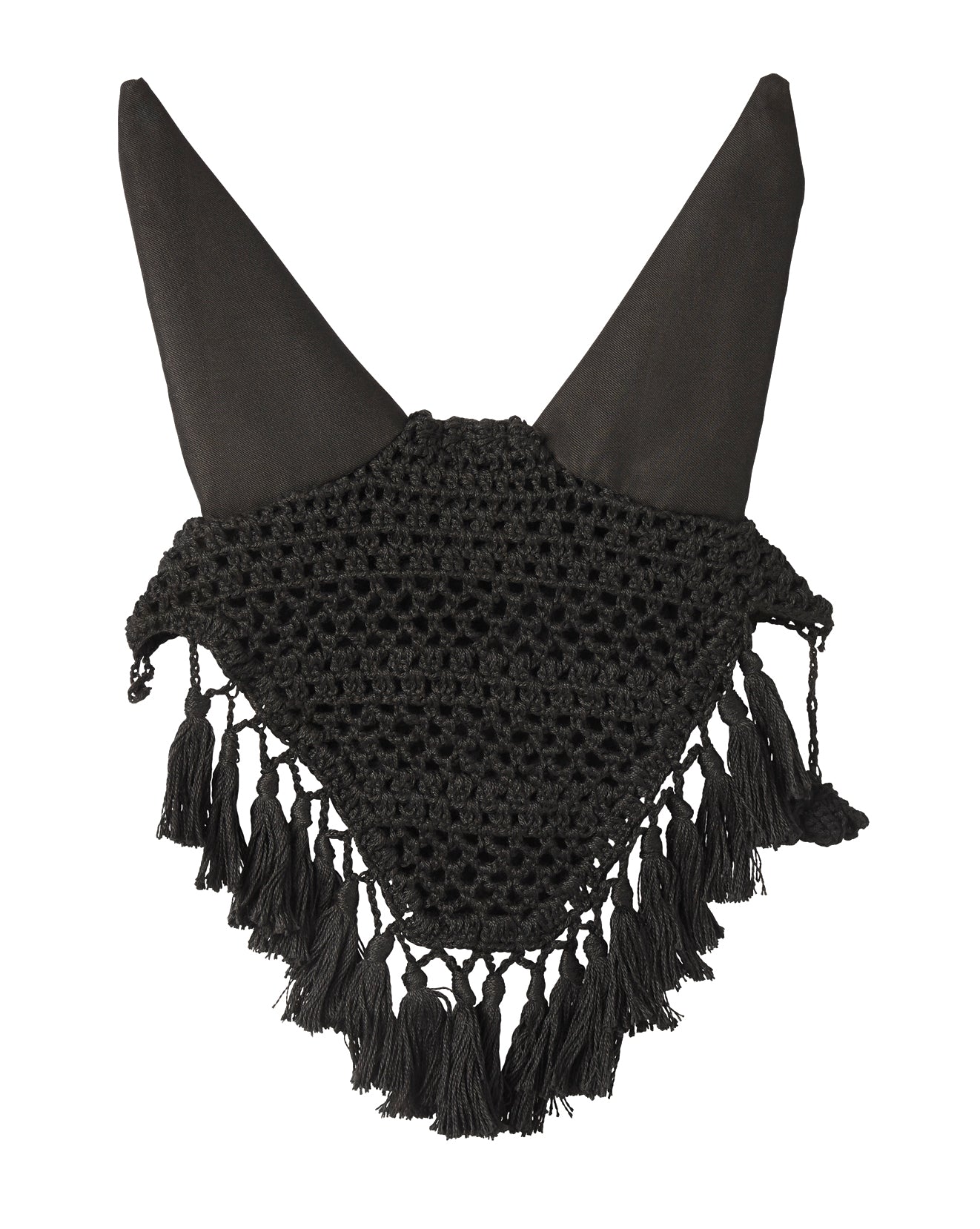 The Rider’s International™ Crochet Fly Bonnet with Tassels is a budget-friendly choice in a variety of colors. Made to keep flies away from your horse’s eyes without impeding vision, it features a breathable crochet body fringed across the front with tassels. This fly veil offers plenty of space between the fabric ear covers to prevent pulling as your horse’s ears move.