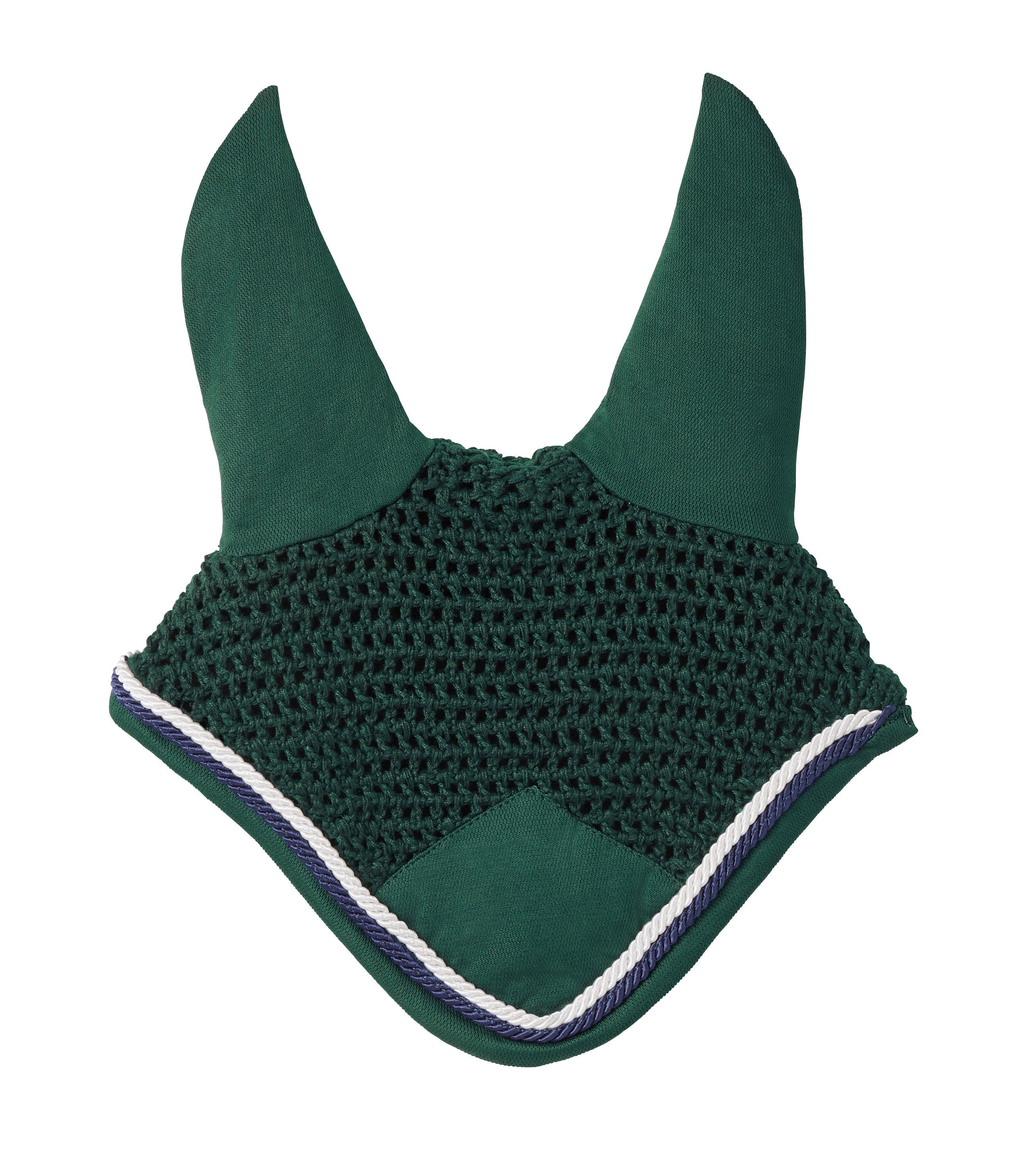 The Rider’s International™ Piped Ear Bonnet fits closely under your horse’s bridle without the need for a throatlatch tie to worry about. Offered in an array of colors to mix and match with your saddle pads, this knitted cotton fly veil has stretch nylon ears to ensure comfort. It is embellished with offset silk rope piping and has a woven front patch perfect for monogramming.