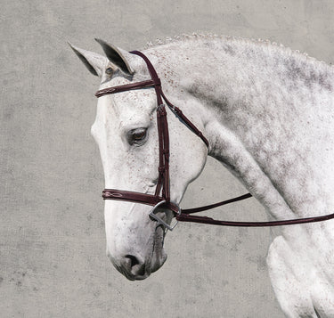 The Rodrigo Classic Hunter Bridle with reins is reminiscent of the great hunter bridles of the past. Made of exquisite American leather, this traditional bridle has square-raised styling and fancy stitching.