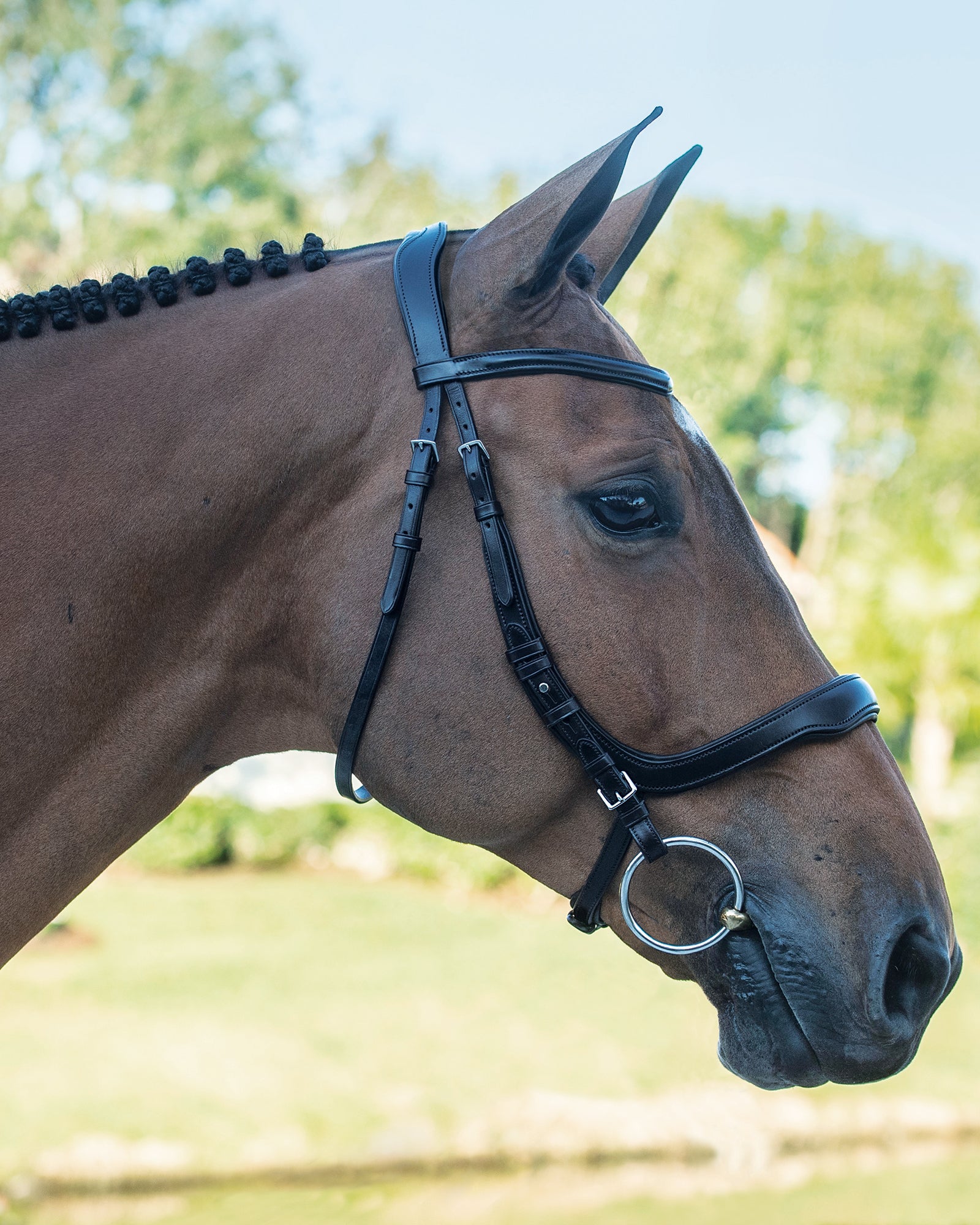 • Softly padded, contoured single crownpiece that avoids pressure at the backs of the horse’s ears.