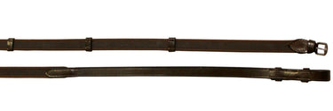 Suffolk™ Web Rubber Reins are correctly styled, nonslip reins. Rubber woven through the webbing and leather hand stops provide a secure grip. Hook stud ends. 3/4" wide.