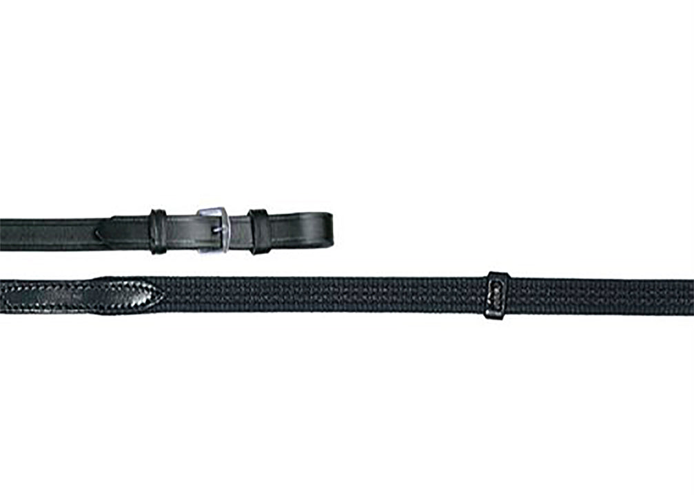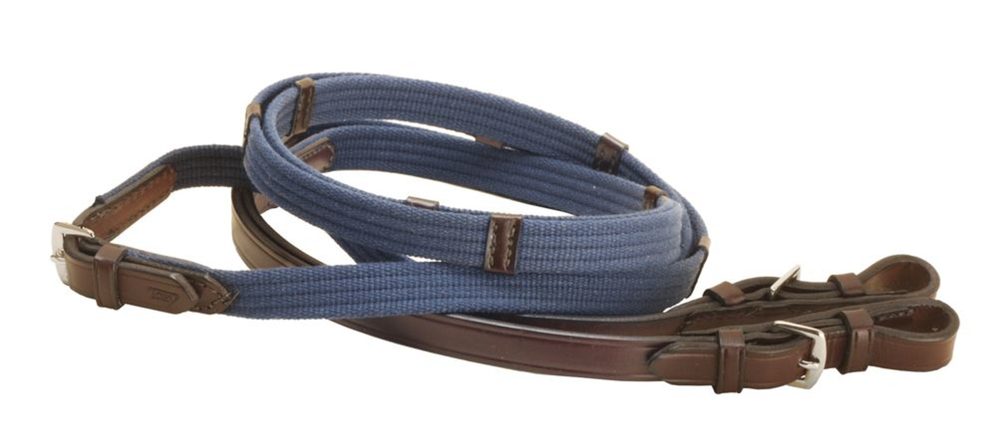 Tory Leather Company Economy Web Reins combine bridle leather fronts with buckle ends and cotton webbing with leather hand stops. This longer length is ideal for use with larger, longer necked horses.