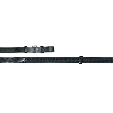 Tory Leather Company Economy Web Reins are a great choice for daily riding. They combine bridle leather fronts with buckle ends and cotton webbing with leather hand stops to provide a comfortable grip. Black.