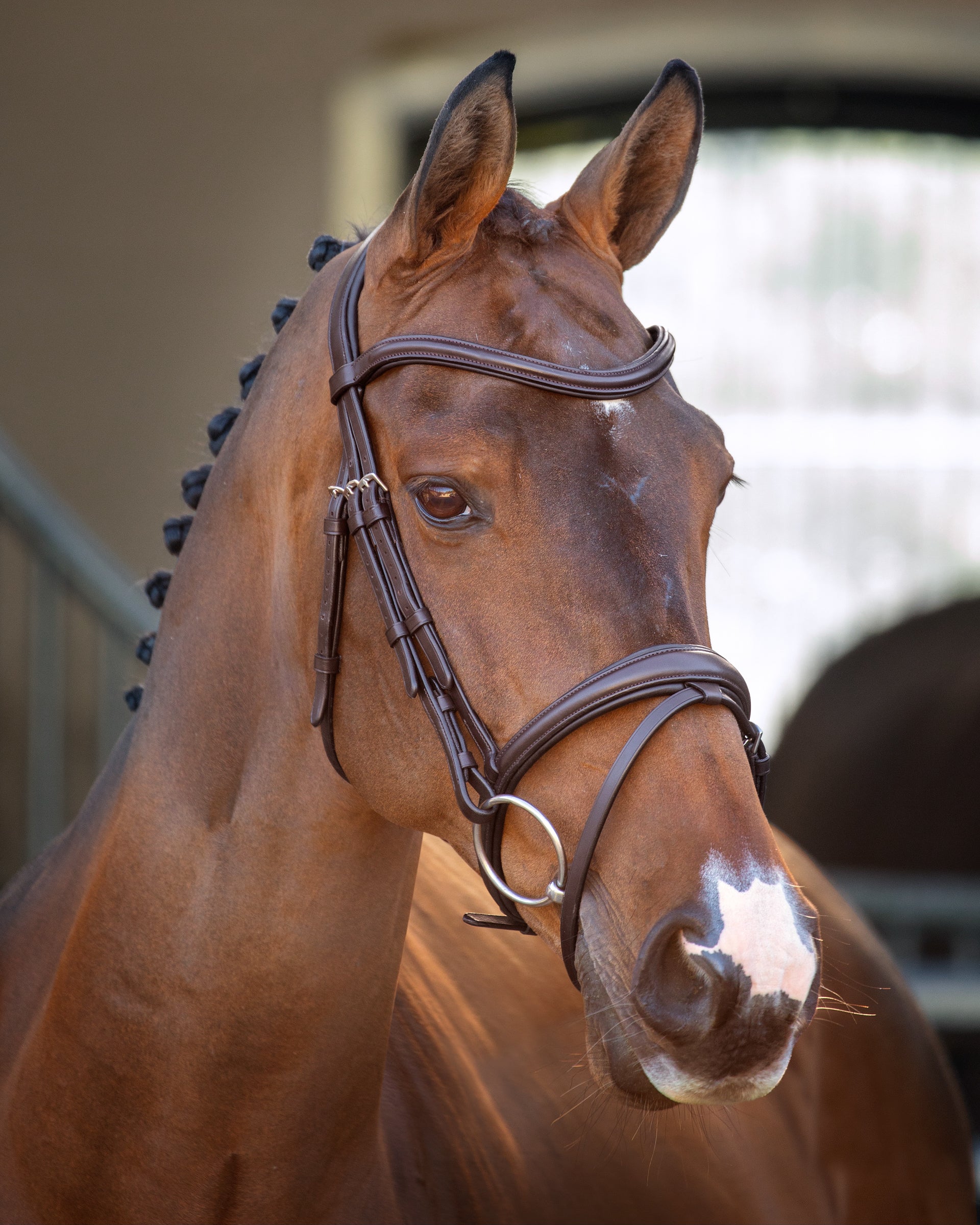The Pro Series Luxe Velociti Lusso Padded Raised Flash Bridle is smart and refined in supple, vegetable-tanned European leather. Raised detail at the brow and noseband give it elegance, and soft, cushioned leather linings at the nose, brow and crown ensure a comfortable fit.