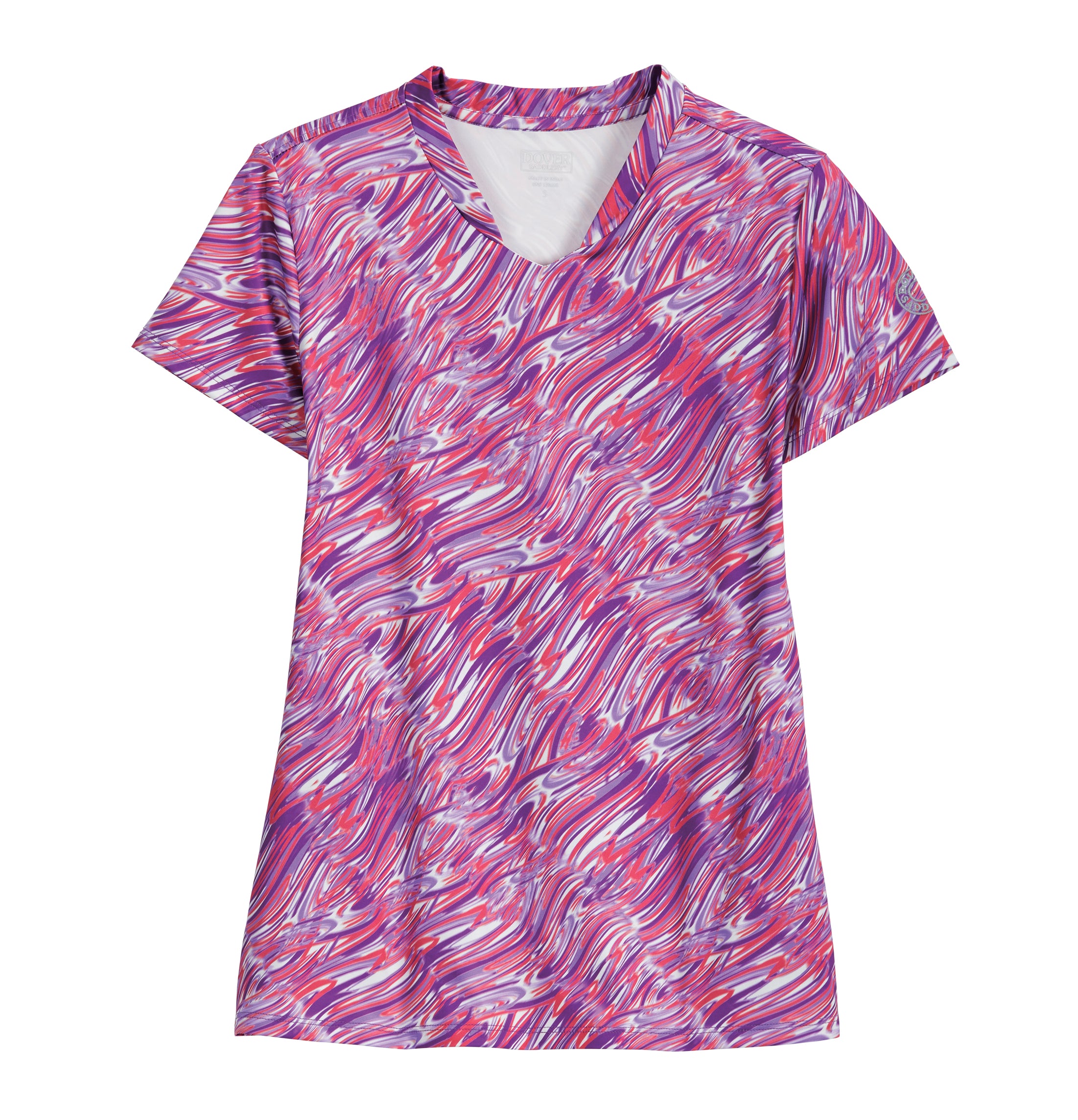 Lightweight yet not clingy, this DS Ladies’ Shalmar Print Shirt has an elevated look with a beautiful digital print and notched V-neckline. The breathable fabric with extra stretch wicks moisture to help keep your skin dry.