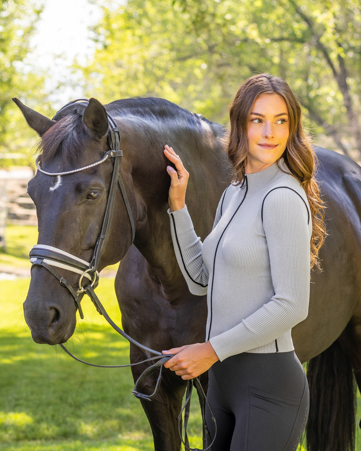Kastel Denmark Ladies’ Mock Neck Knit Sweater is ready for all your riding needs. Dalia debuts with a black, sporty piping for an elevated look. Tailored fit with a mock neck and super soft, lightweight rib knit fabric that keeps you looking great all season long.