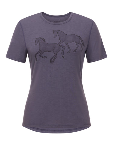 The Kerrits® On the Double Horse Tee is lightweight, stretchy and highly breathable. Made of technical fabric, it wicks moisture and feels soft on skin. An exclusive Kerrits graphic accents the front.