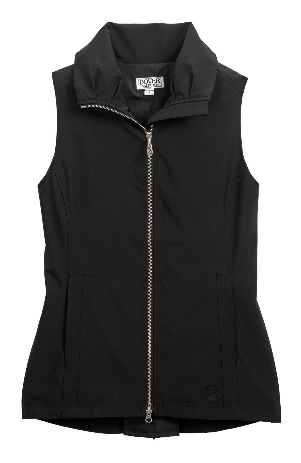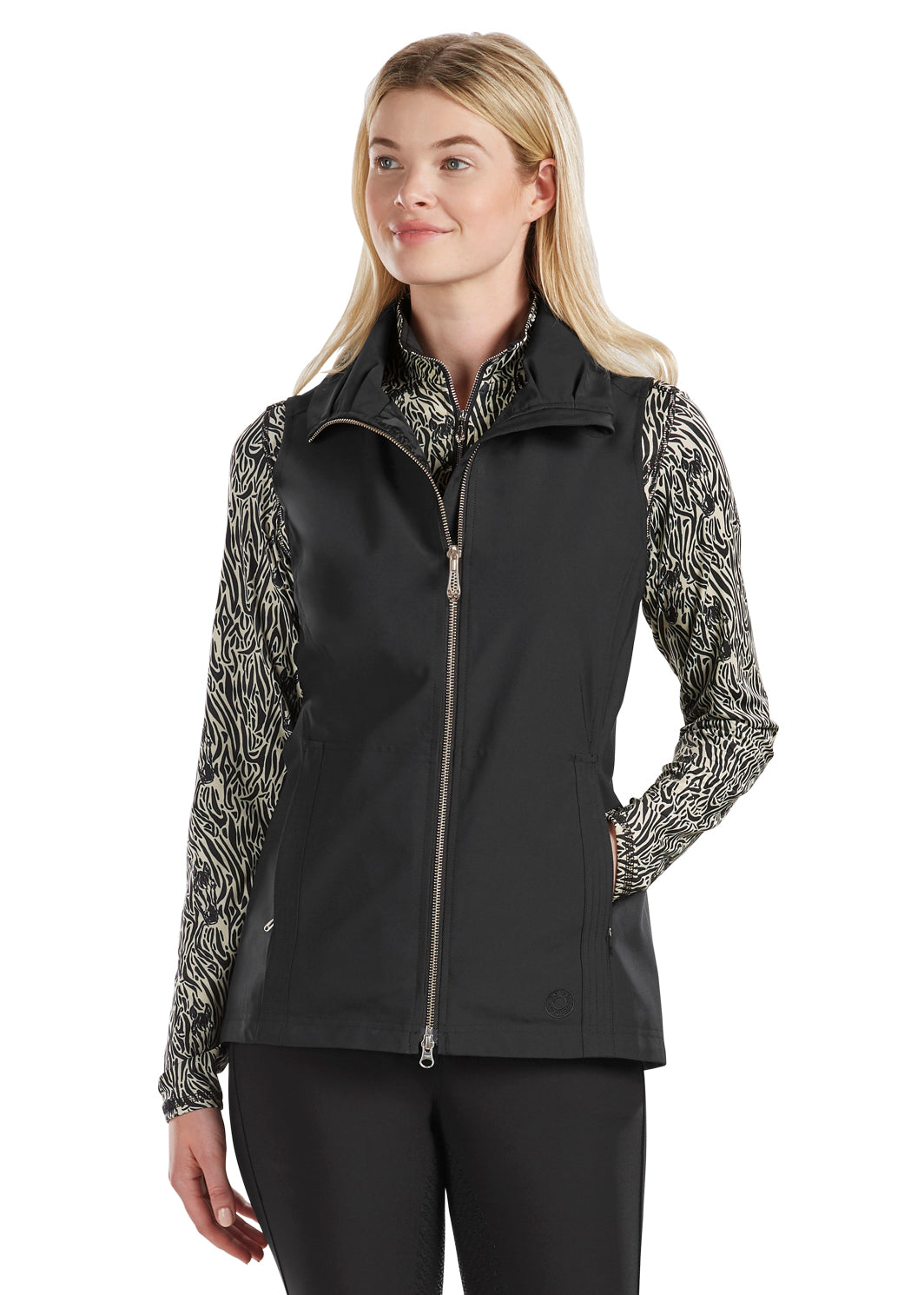 Ariel Vest has an elegant, high neck that softly slouches to gives it a beautiful look. A jewelry-inspired decorative crystal pull accents the silver-colored zipper. Four-way stretch combines with back vents to let you move freely in the saddle.