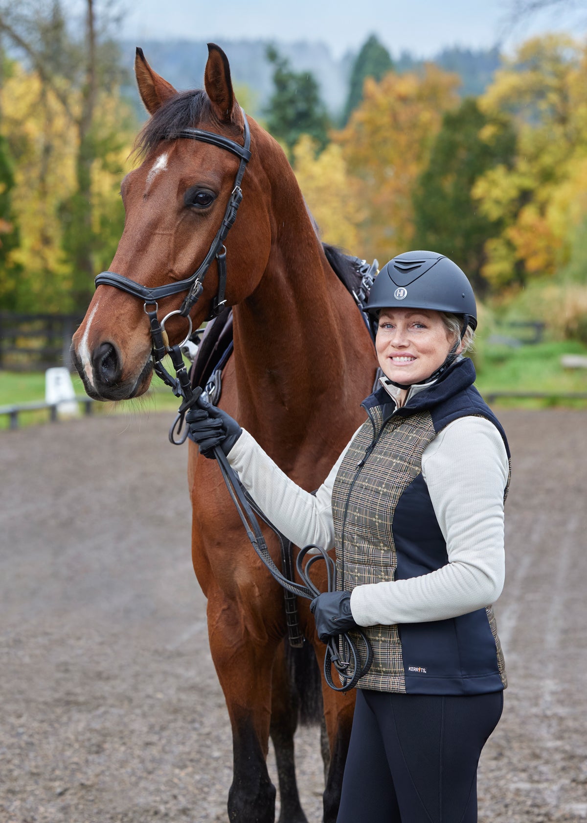 The Kerrits® Bits of Plaid Quilted Vest marries warmth with English country style. This mid-weight, three-season layer insulates your core with 140 grams of poly loft fill inside a wind- and water-repellent outer.