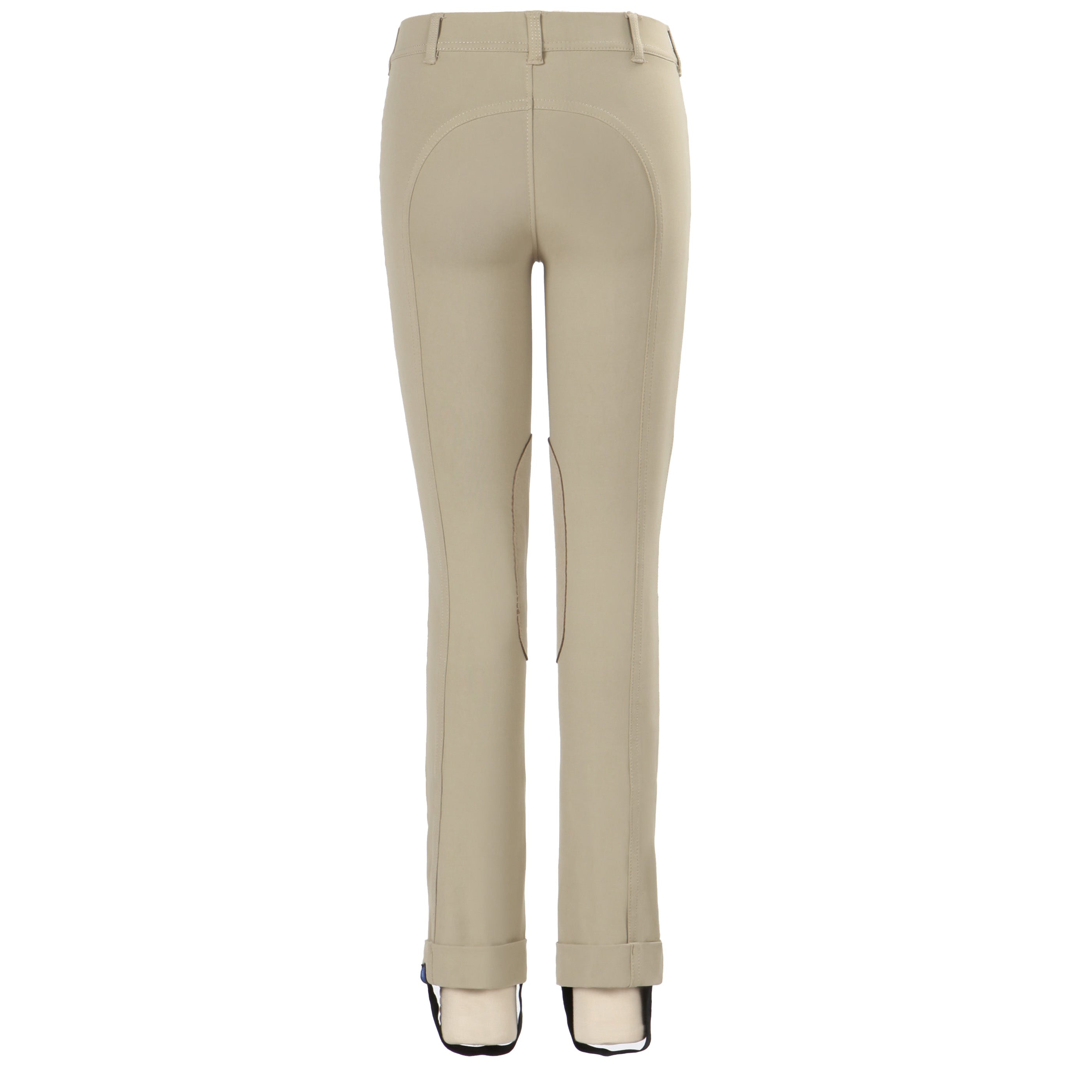 Irideon® Kids’ Issential™ Jods in four-way stretch microfiber fabric have no-chafe seams for comfort. Built-in wicking properties keep skin feeling dry. Chamisoft™ knee patches provide grip. These jodhpurs are traditionally styled with a no-roll waistband, belt loops and cuffed hems.
