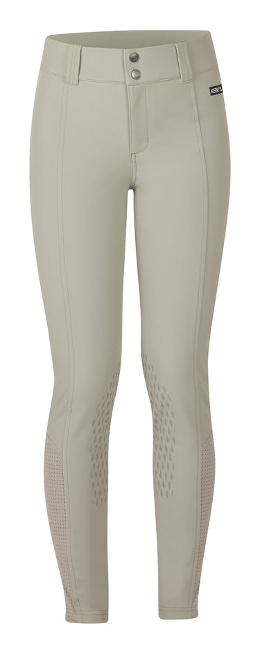 Kerrit Sticks™ silicone knee patches securely grip and flex. Cooling IceFil mesh calf panels reduce bulk inside tall boots. Front fly tailoring with snap closure, 2" comfort waistband with belt loops and Euro seat.