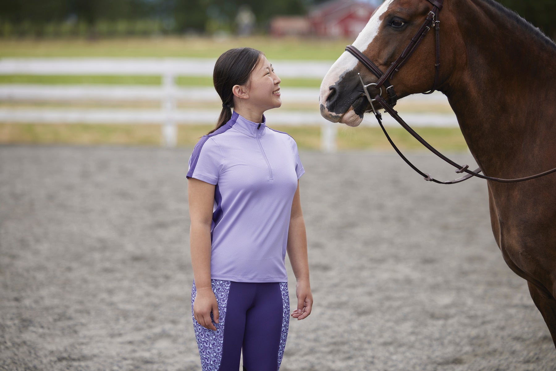 Built-in UPF 30 helps shield skin from the sun, while built-in stretch allows freedom of movement. The fun colors match easily with Kerrits breeches and tights.
