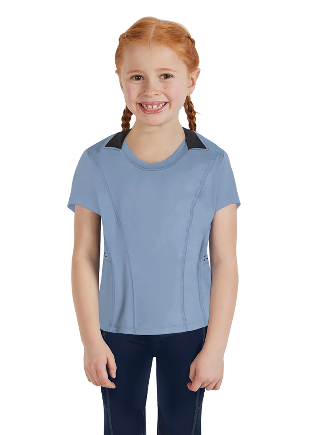 The Stride™ Kids’ Arial Short Sleeve Shirt is the lightweight performance top young riders need on active days. In stretchy, moisture-wicking fabric, it has a sporty crew neckline with contrast color accent, flattering princess seaming and easy-to-move-in raglan sleeves.