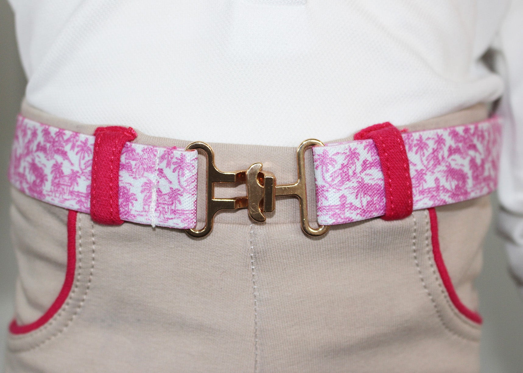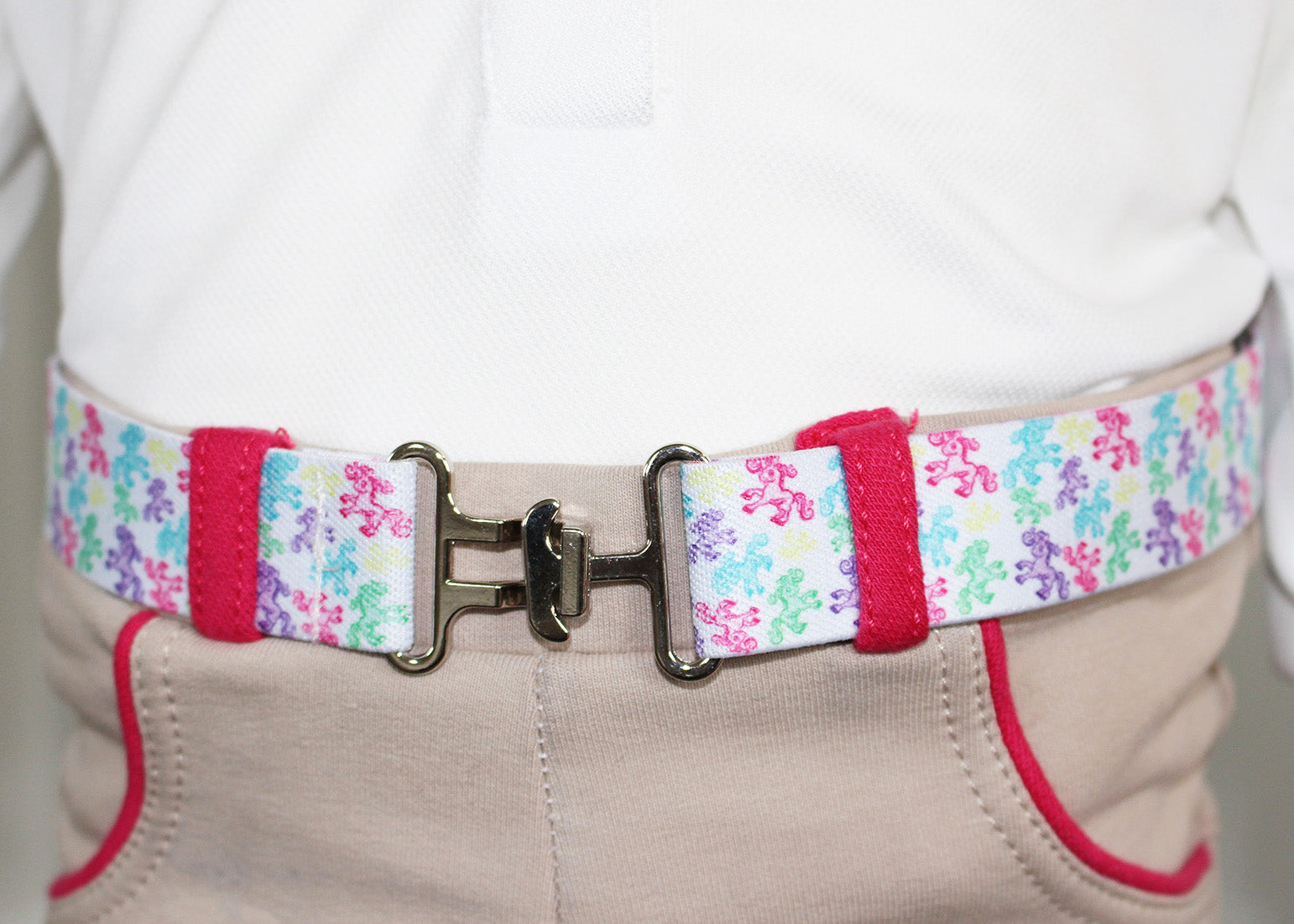 The Belle & Bow Equestrian Belt is a fantastic choice for the growing young rider. Made from wide, flat elastic to lie flat against the body, it adjusts from as small as 16" long up to 29" long. Each is just 1" wide to fit through the belt loops on children’s breeches, jods and jeans. The equestrian style belt buckle allows easy on/off. Available in coordinating colors to match Bow & Bell Equestrian outfits.