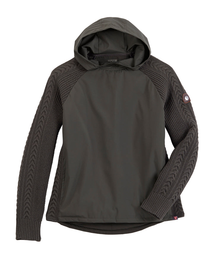 The DS Athens Sweater is a hybrid, hooded style that boosts warmth at your core. Breathable cable-knit thumbhole sleeves and side panels keep you cozy and allow freedom of movement. A padded, quilted body insulates your core and offers water and wind repellency.
