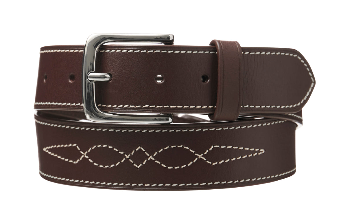Marshall Leather Belt adds sophisticated equestrian style to your look. Designed by an English saddler, inspired by handcrafted bridlework and made from genuine leather, it has a two-buckle detail on each side. At 1.25" wide, it fits most fashionable belt loops.