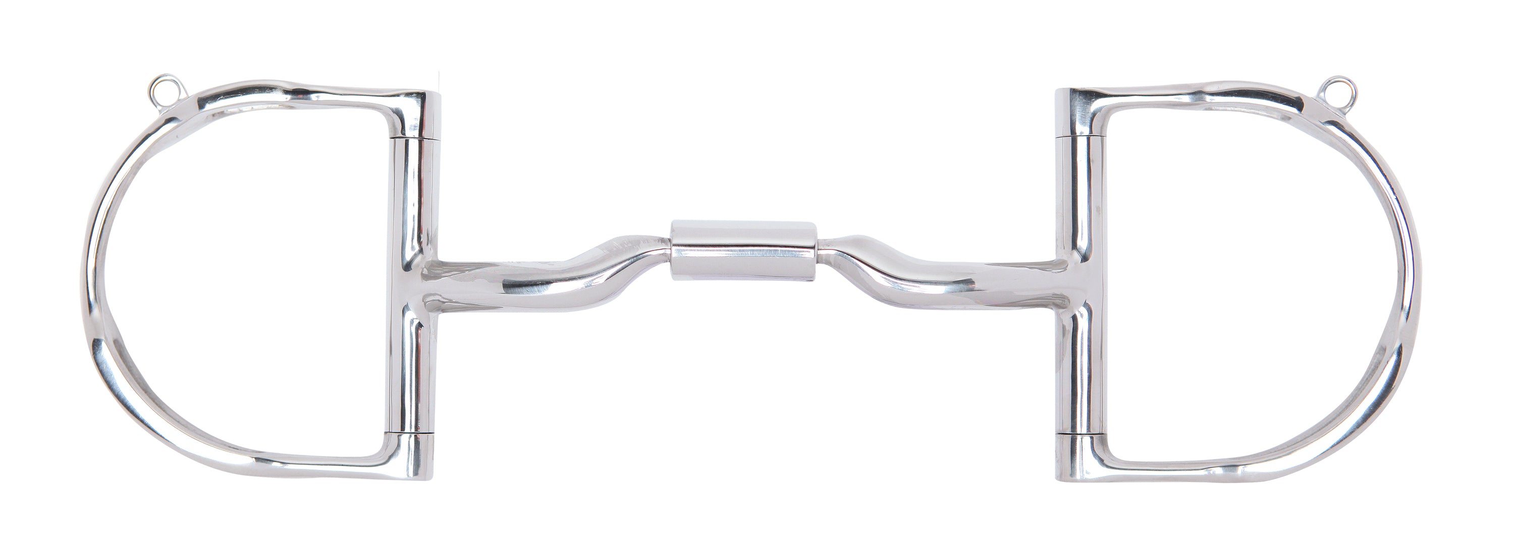 The Myler® Low Port Medium Dee Ring with MB 04 mouthpiece with Hooks is a Level 2 Myler bit designed for horses with basic training established. The free-rotating barrel with low port uses less tongue pressure and collapses onto the bars. The curved mouthpiece permits the horse to swallow more freely and distributes pressure evenly.