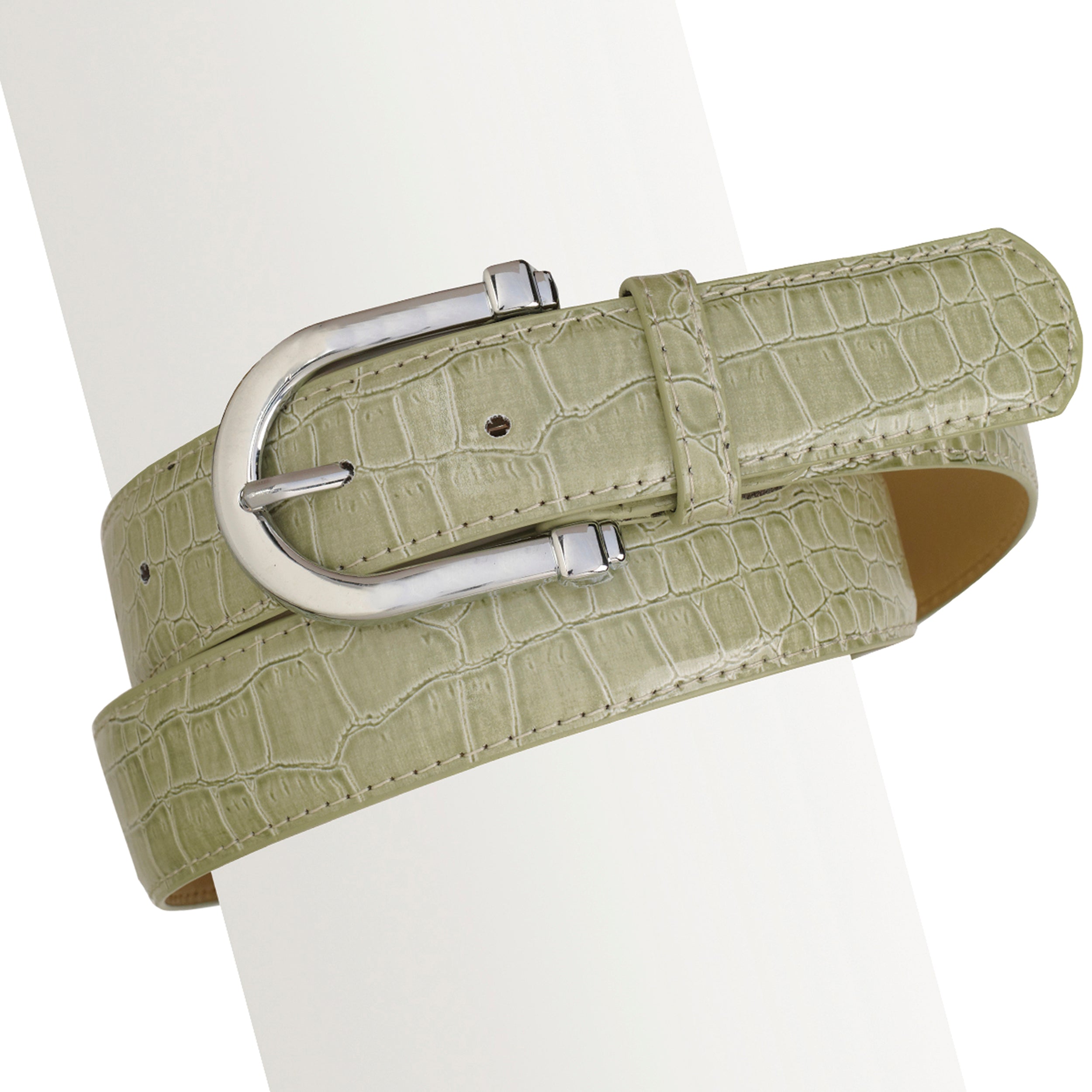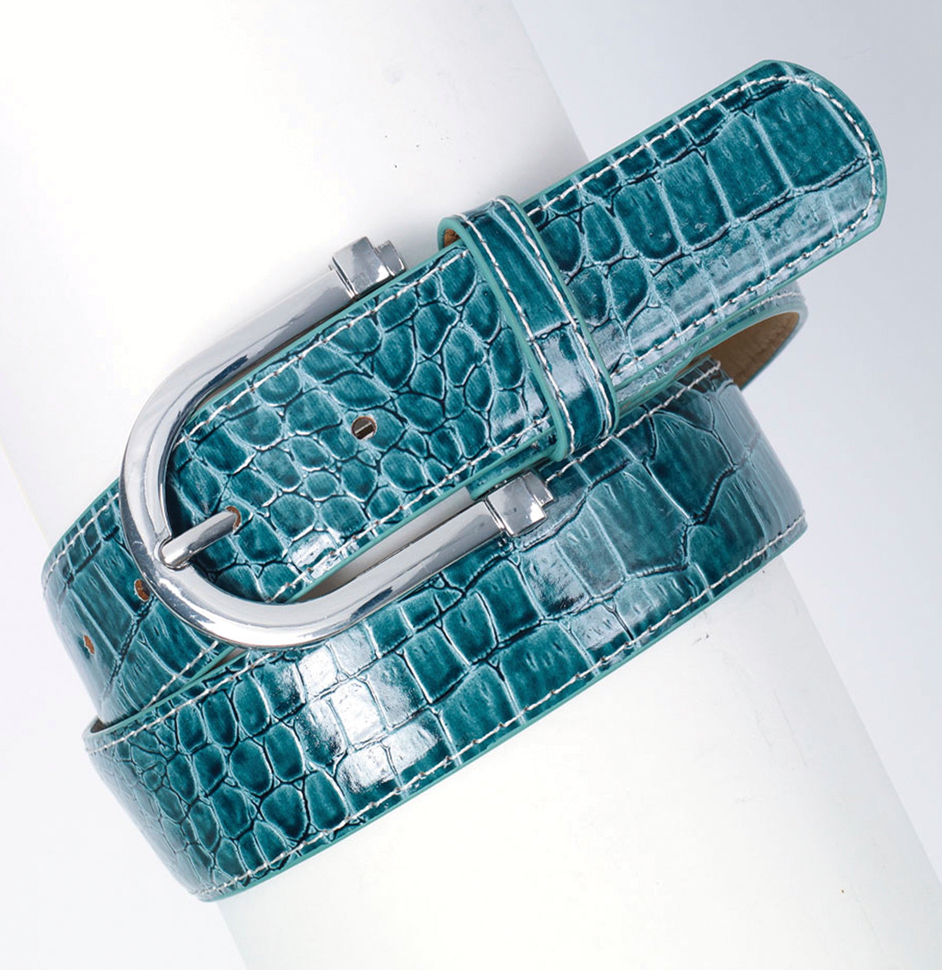 A fun twist on a classic accessory! This Ovation® Belmont Belt features a stamped crocodile print on vibrant and glossy colors. Fitted with a stainless steel buckle.