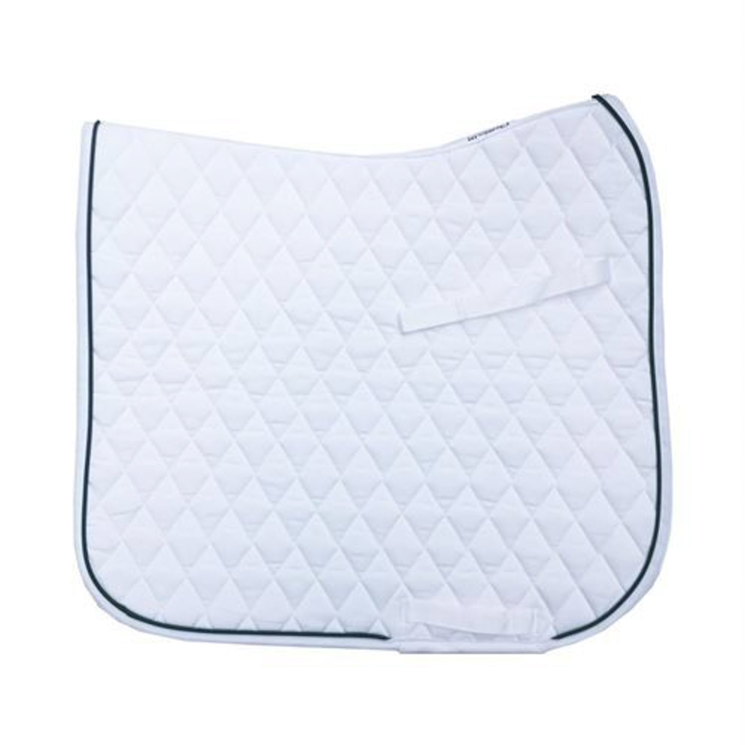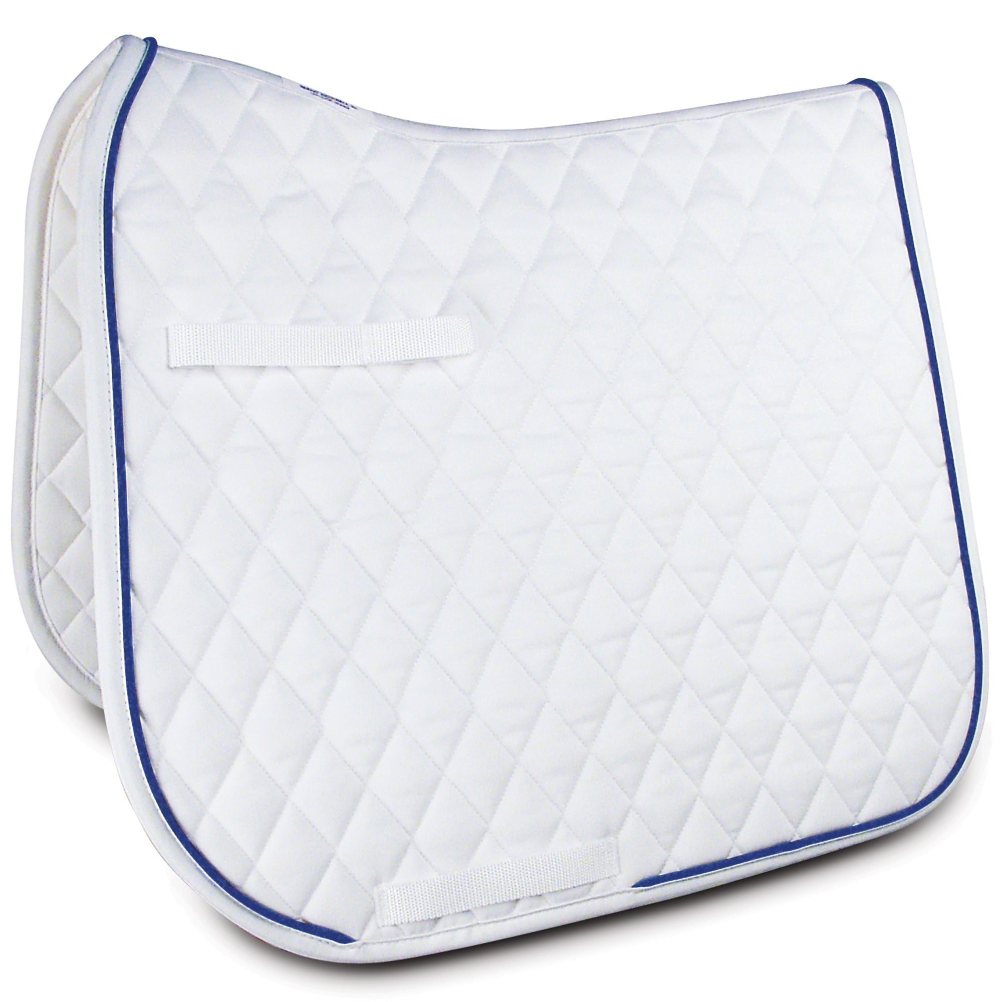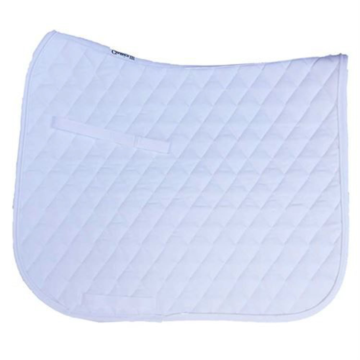 Made in the USA, this Toklat® Classic III Extra-Large Dressage Pad with a roomy cut is an outstanding saddle pad combining top-quality materials for an elegant show or schooling pad. It features a cotton/polyester blend quilted top, rolled piping and a 100% brushed cotton bottom for a nonslip grip. Contoured at the withers for a more comfortable fit, it resists bunching under the saddle.