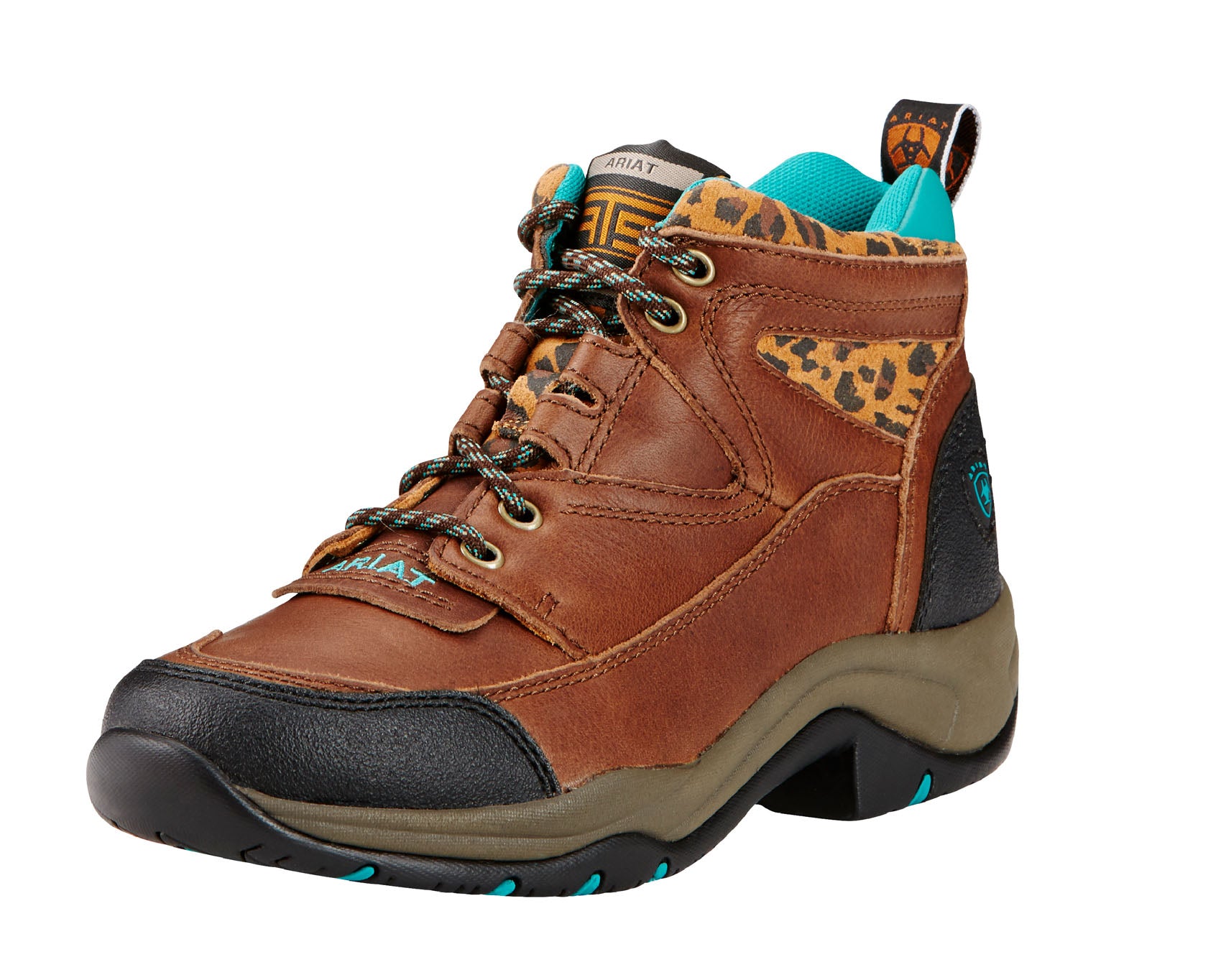 The Ladies' Ariat® Terrain Lace offers high-performance support for riding, running or walking. Makes a great choice for wearing around the barn or walking horse show grounds, too! This versatile boot is constructed of full-grain leather and features Ariat’s ATS® footbed technology for stability, comfort and grip.