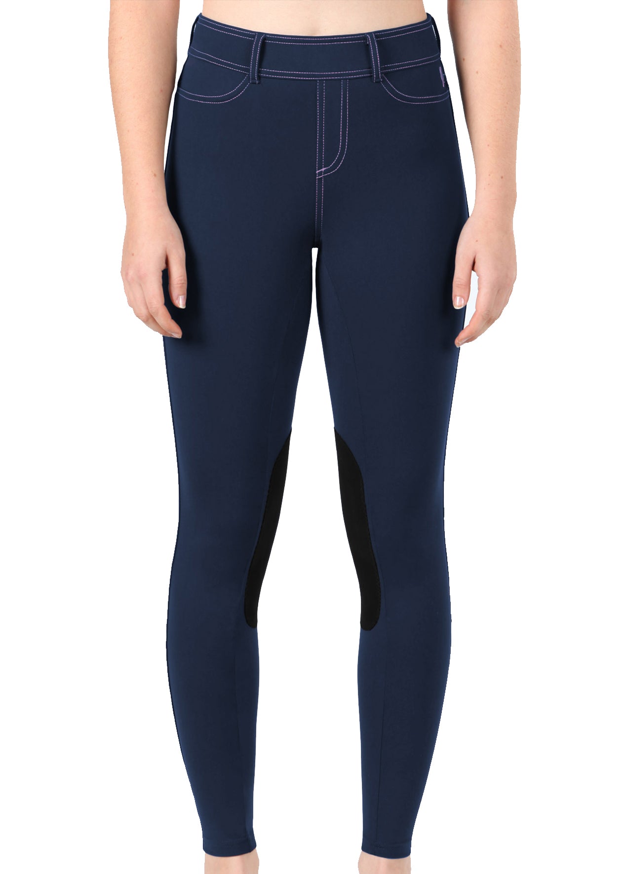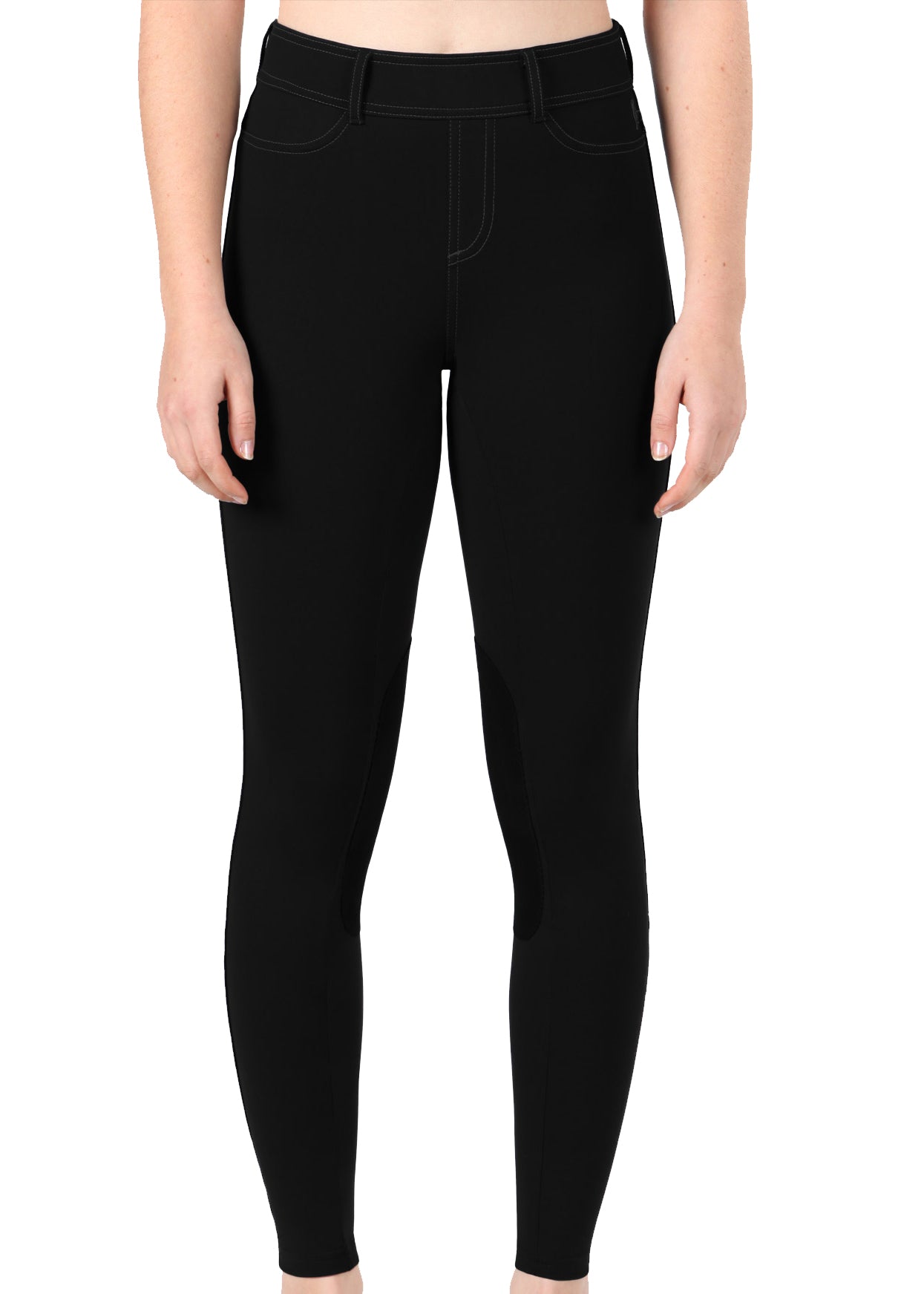 Irideon® Kids’ Cordova Knee-Patch Tight offers amazing body contouring and muscle control. This pull-on tight is cleverly put together to masquerade as a pair of classic five-pocket jeans. The detailing and quality of materials set it apart from the pack.
